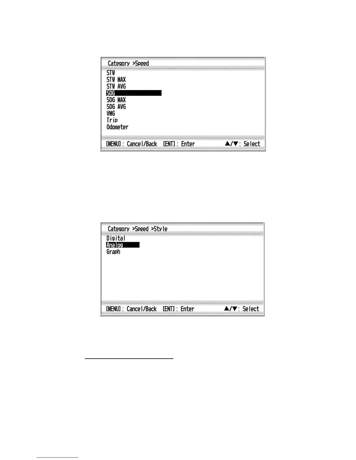 6. Use the Cursorpad (S or T) to select [Digital], [Analog] or [Graph] then press the