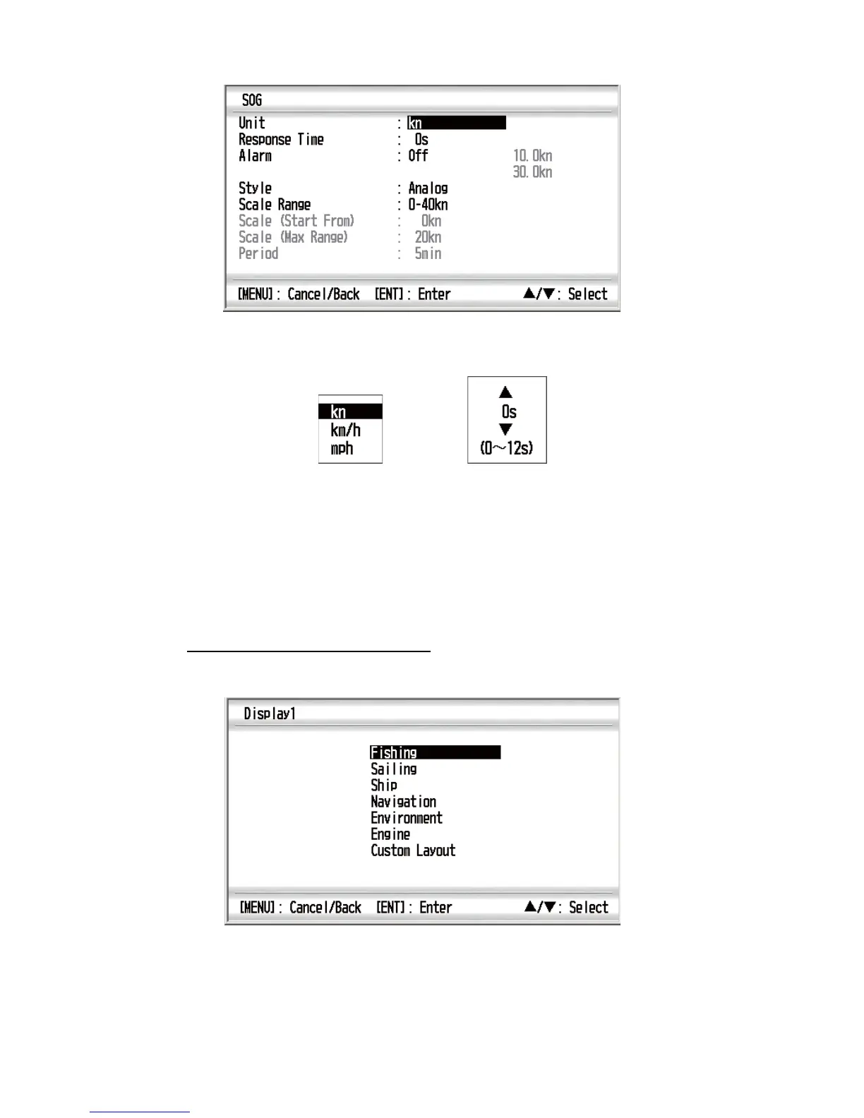 4. Use the Cursorpad (S or T) to select an option and press the ENT key.