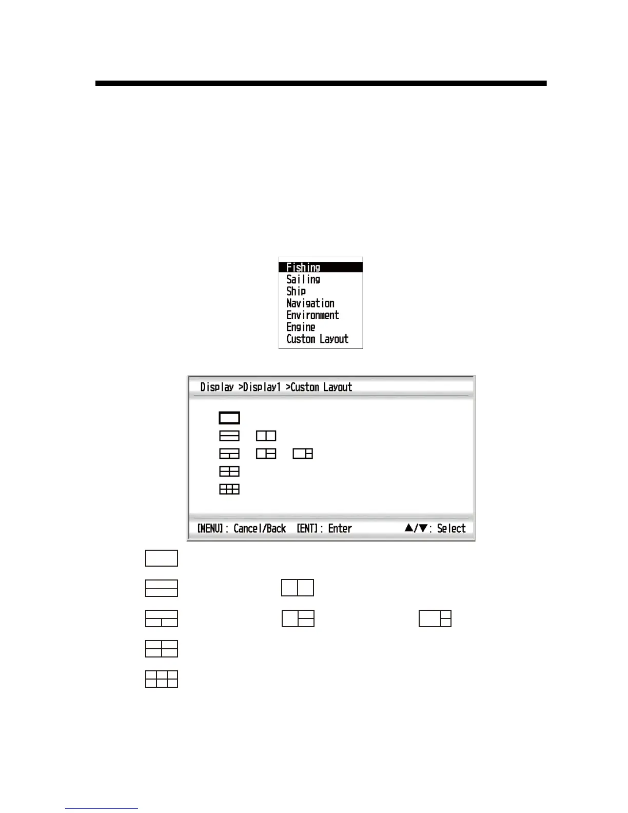 4. Use the Cursorpad (S or T) to select [Custom Layout] and press the ENT key.