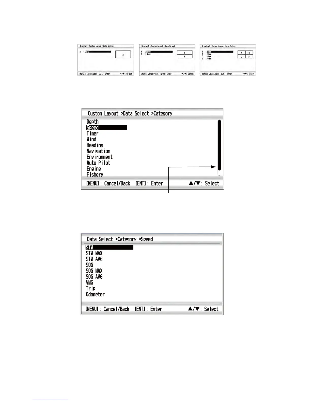 7. Use the Cursorpad (S or T) to select the category desired and press the ENT