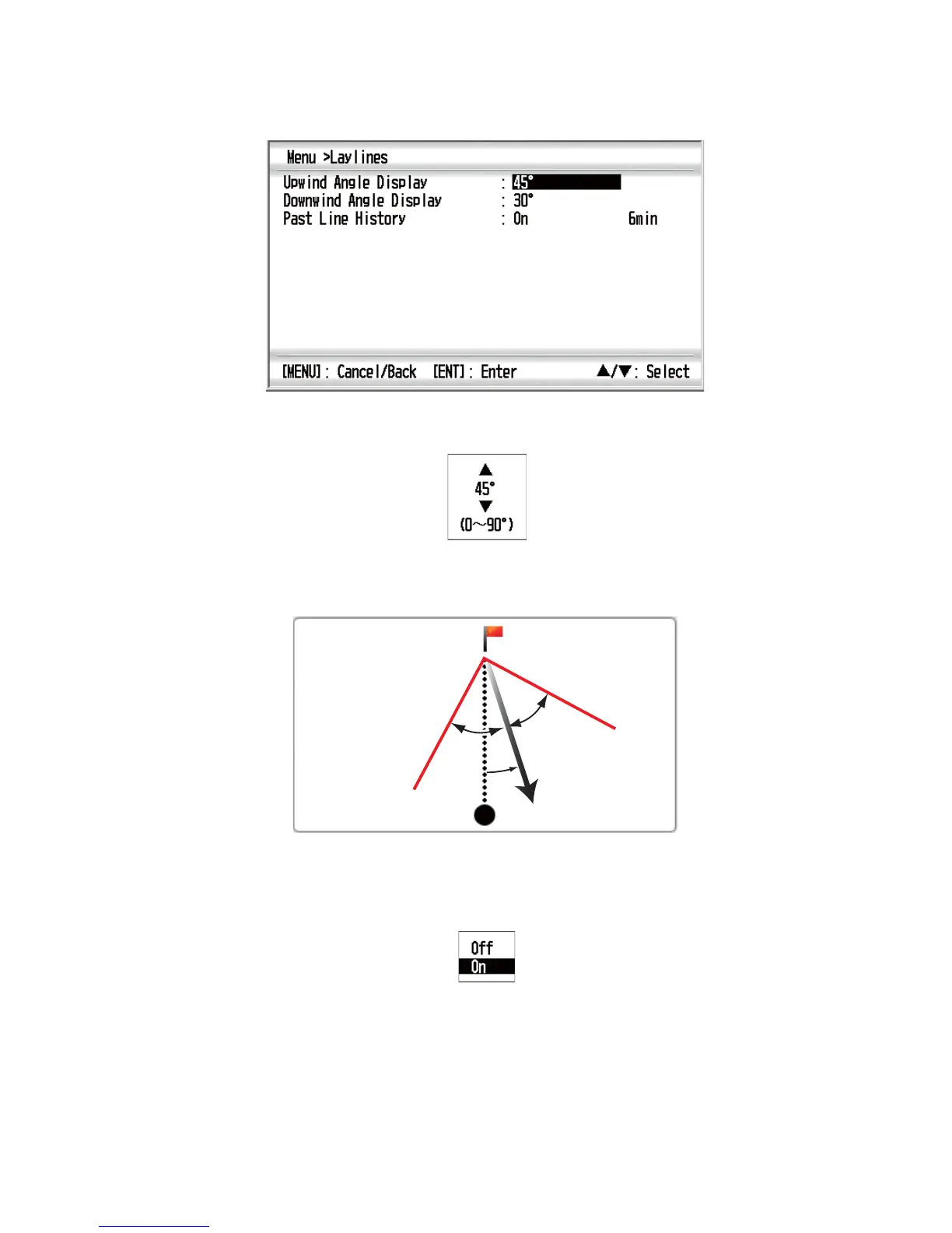 5. Repeat steps 3 and 4 to set the angle for [Downwind Angle Display].