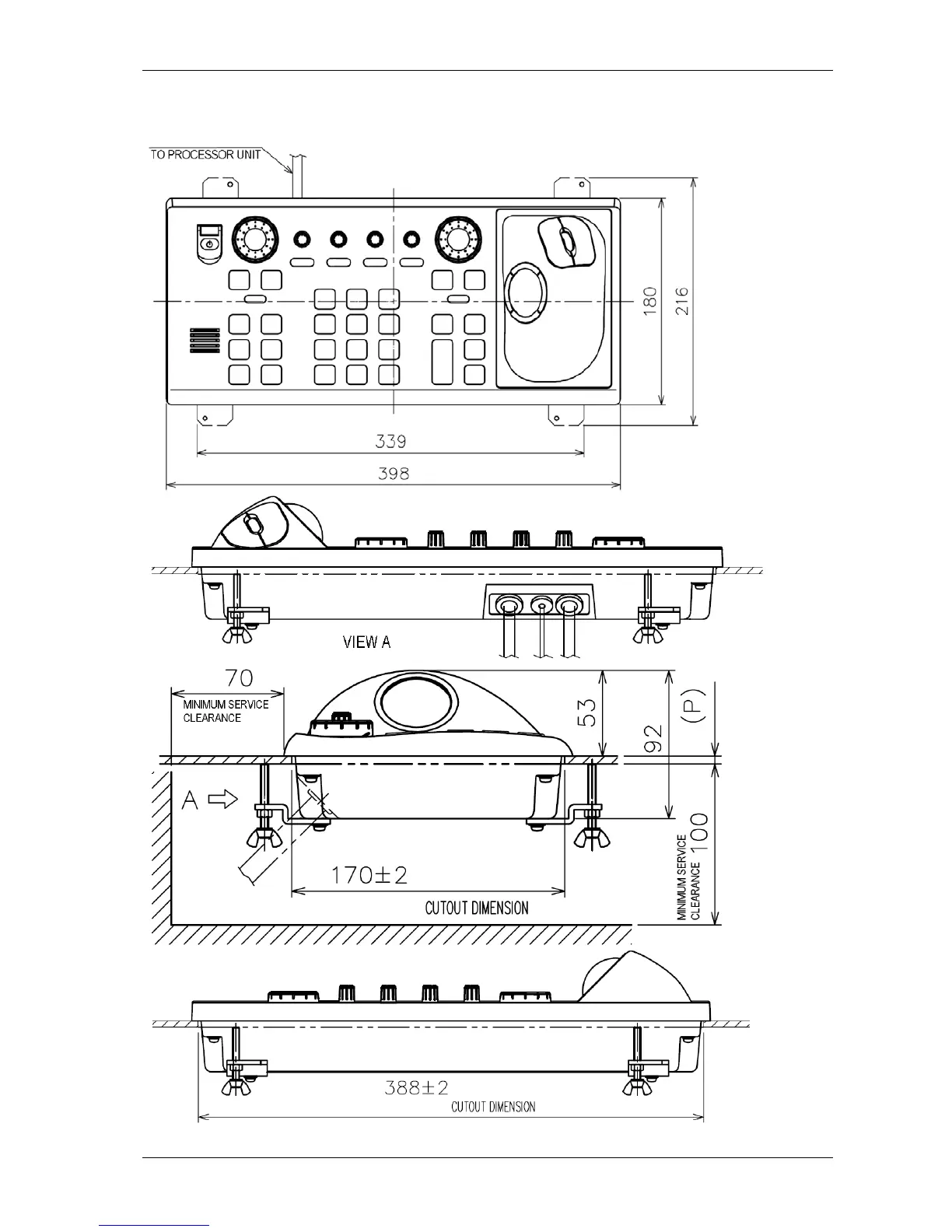 Furuno RCU-018 Control Unit outline (Flush mount)