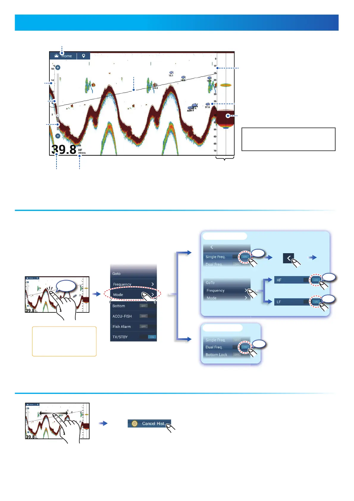 Dual frequency: Show both the low and high frequency pictures.