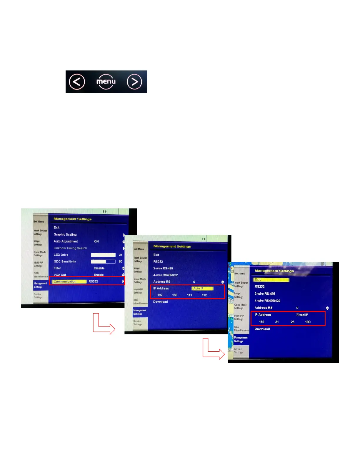 1.3.1. Set a static IP address to the MU Touch Monitors