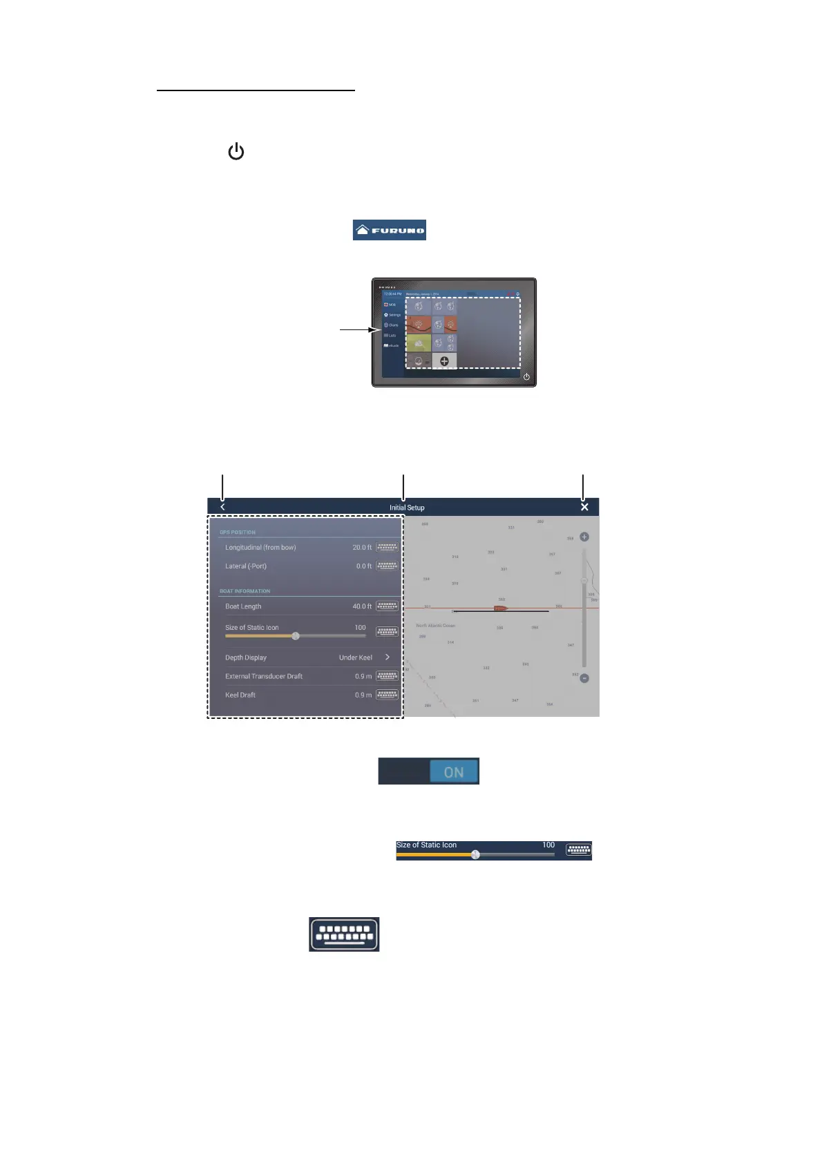 3. Tap the [FURUNO] icon ( ) to show the home screen and display mode
