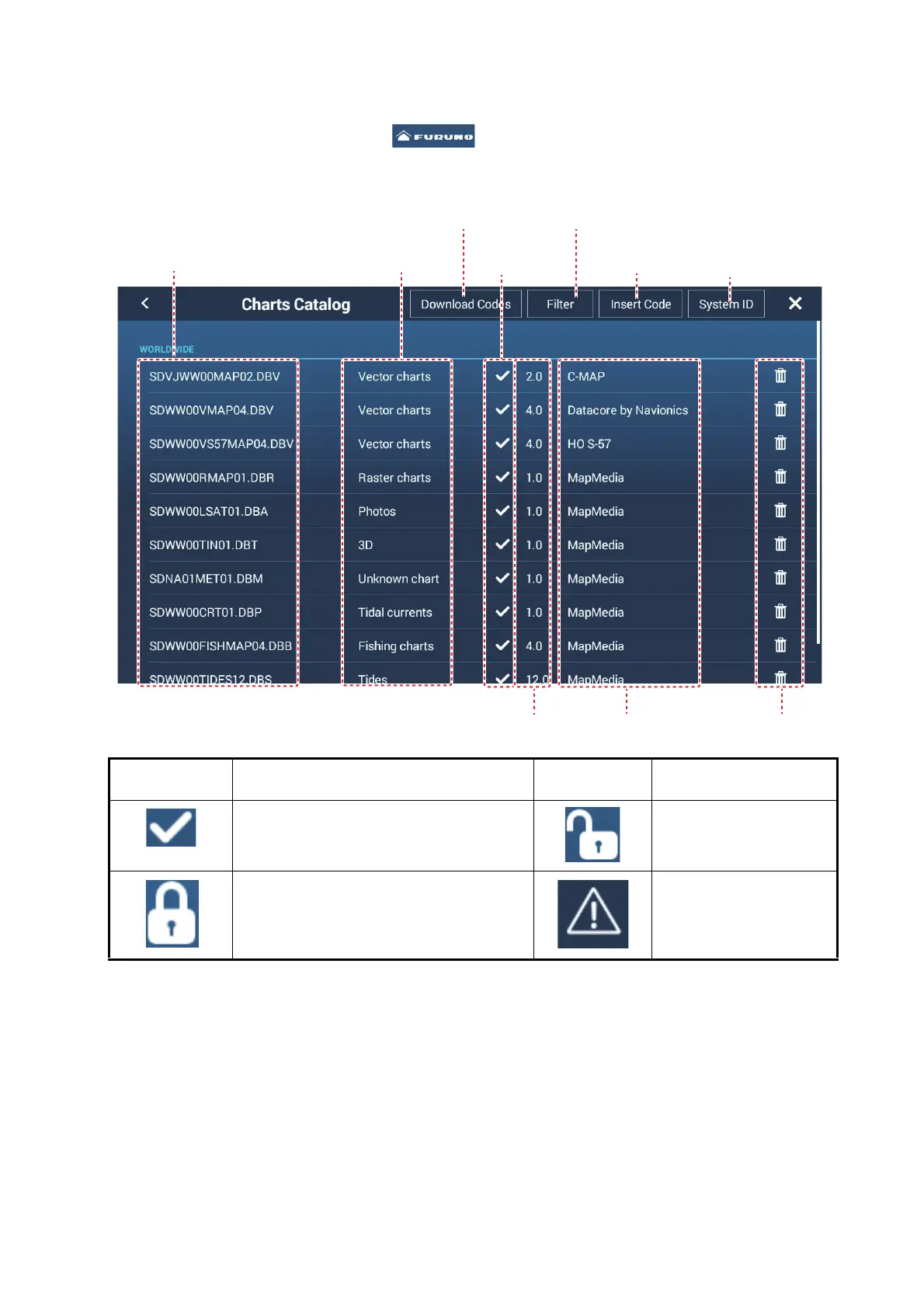 top of the [Charts Catalog] screen. Enter