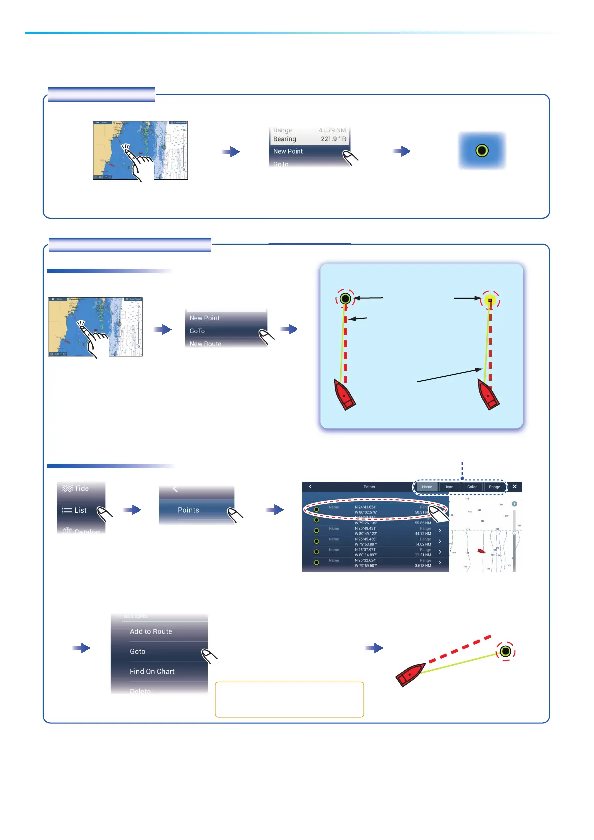 Points can be entered on the plotter display (radar and fish finder displays also) to mark important locations such as