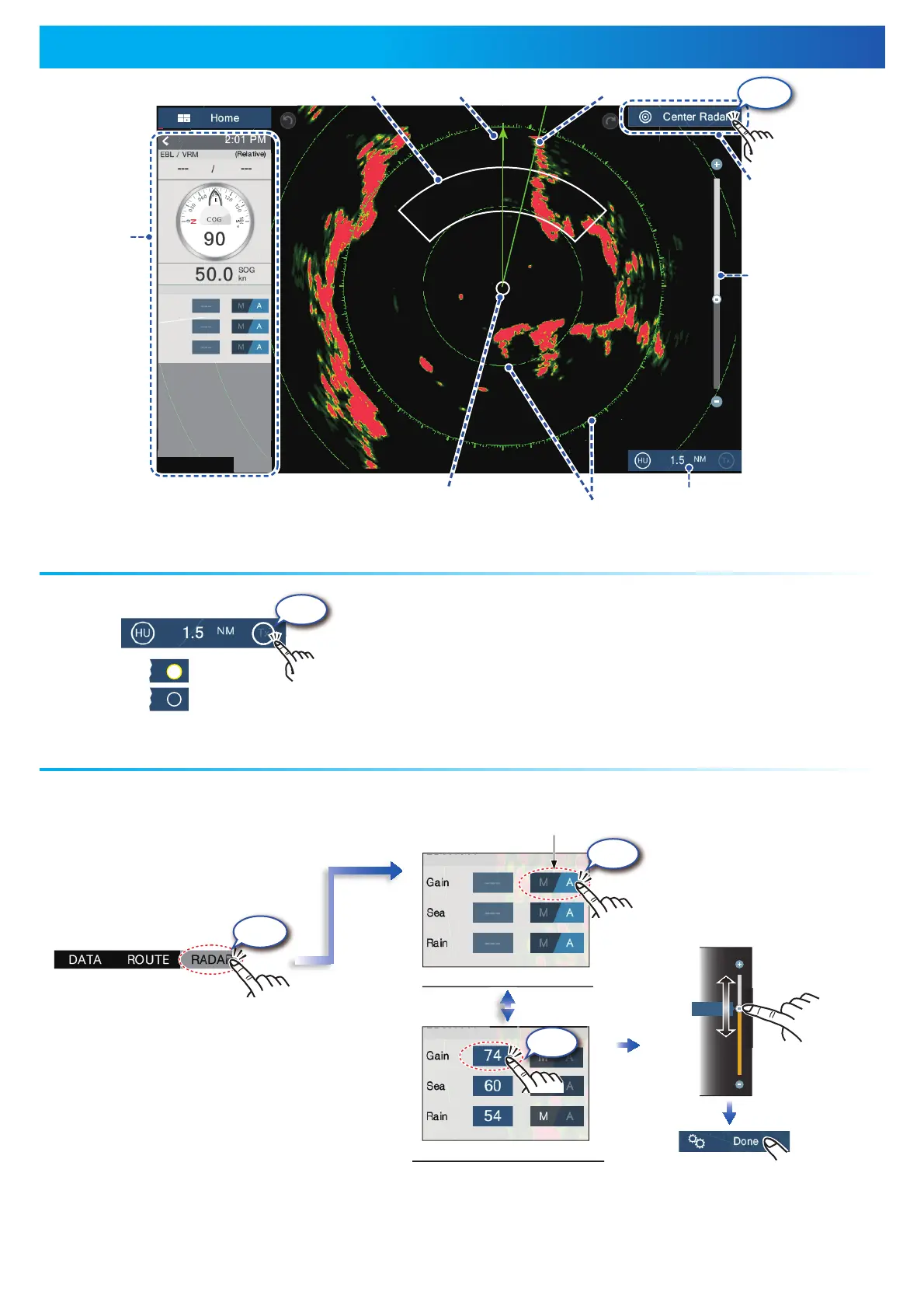 How to adjust the gain / sea clutter / rain clutter
