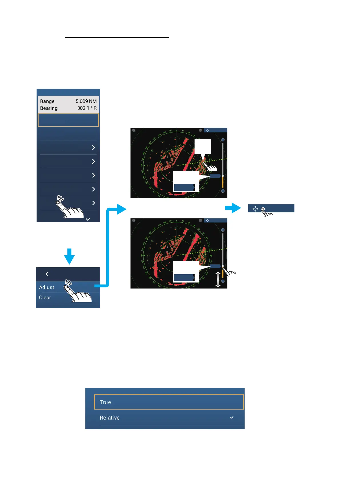 set the EBL. Tap [End EBL] to anchor the EBL and finish. The range to the EBL ap-