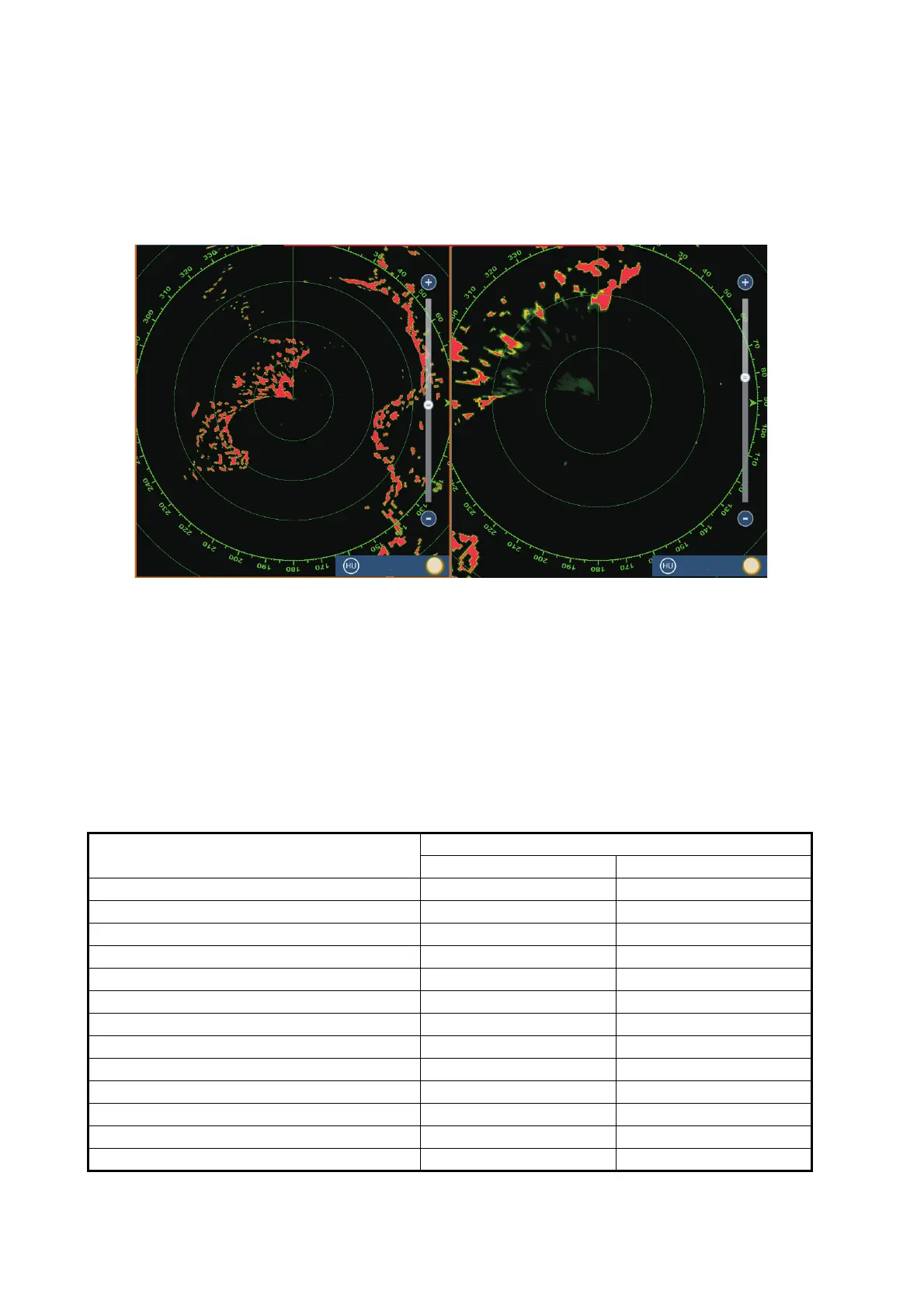 Most radar functions can be adjusted independently. The table below shows radar