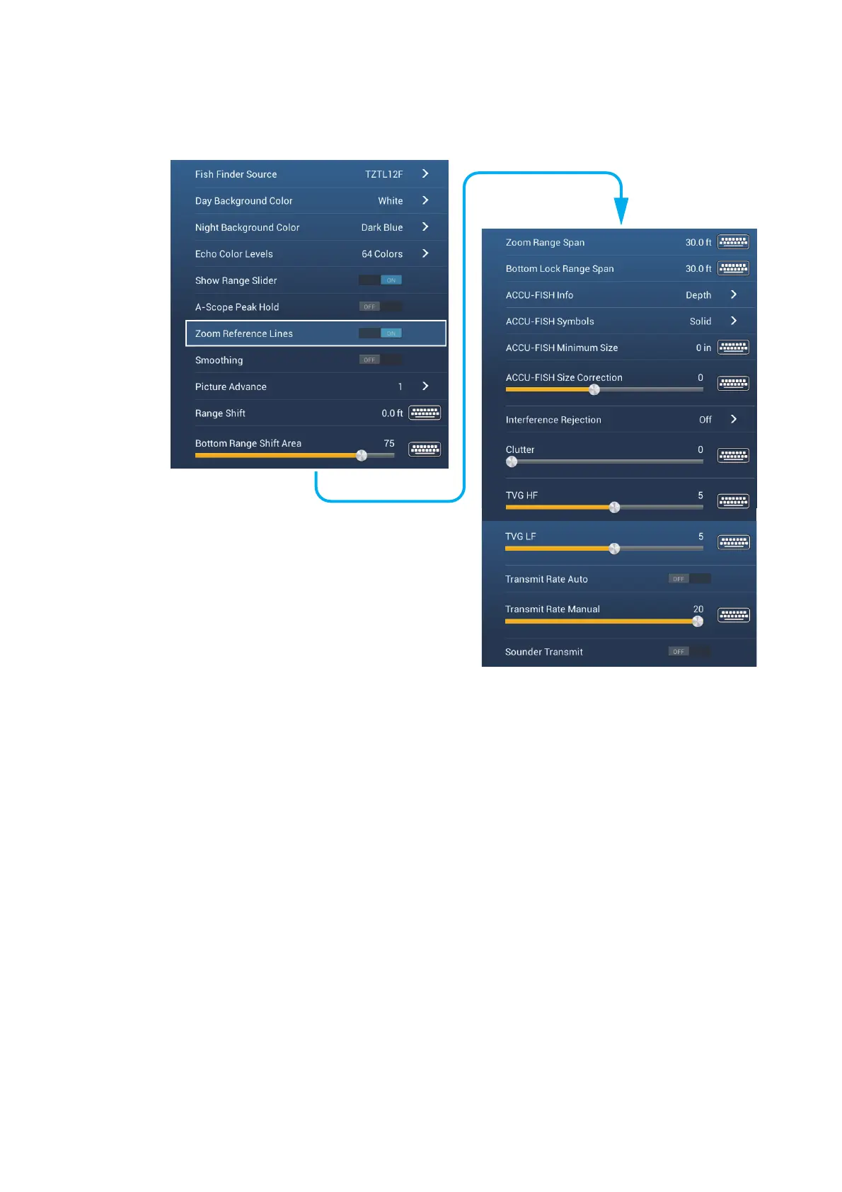 This section describes the fish finder functions not described in previous sections.