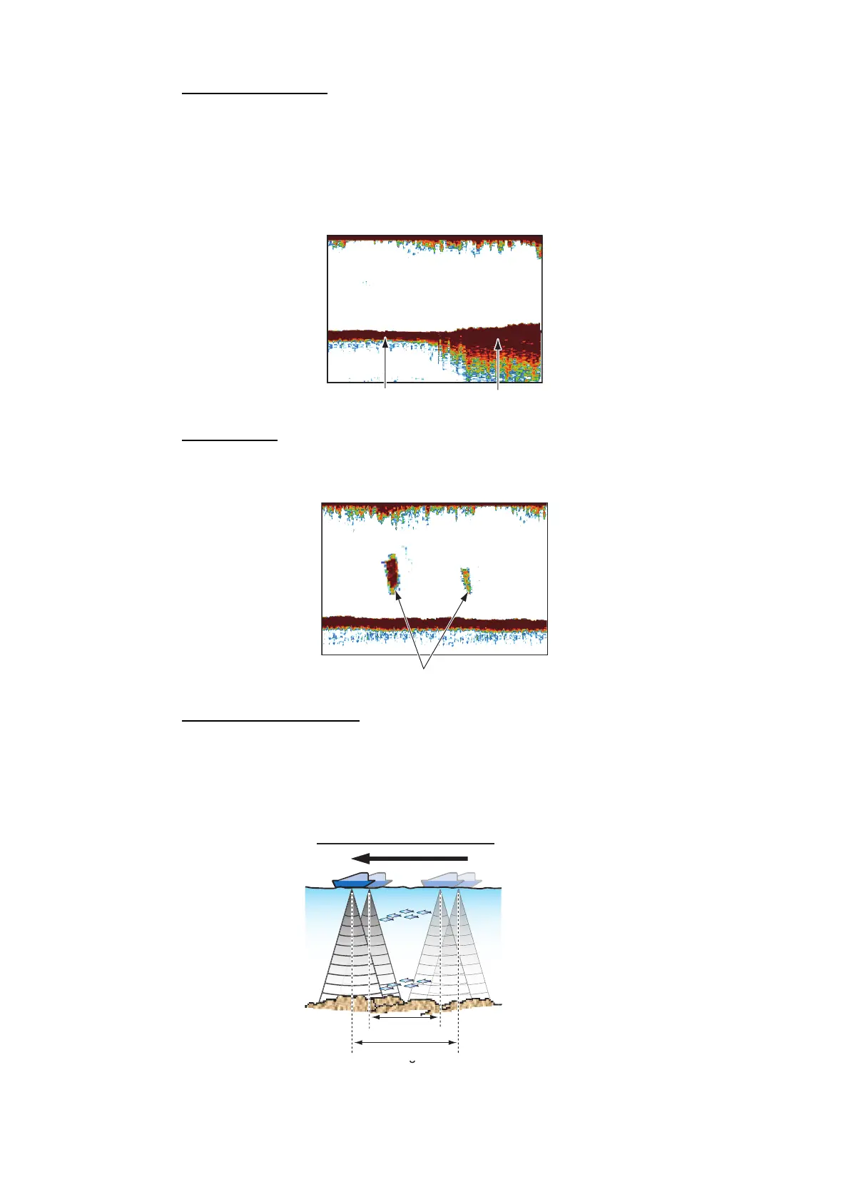 bottom, the bottom echo has less red and with a short tail. A bottom with a lot of small