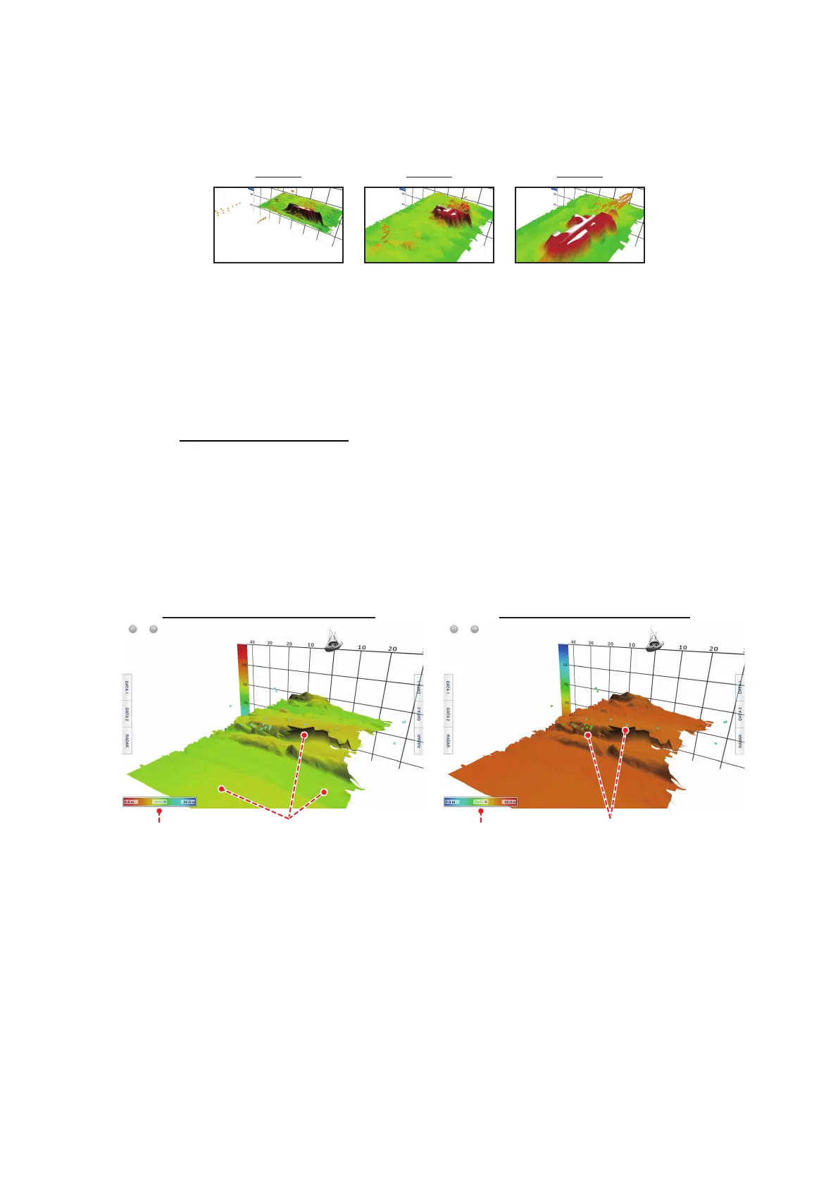 Color shading can be applied to the seabed echo or schools of fish. For the seabed