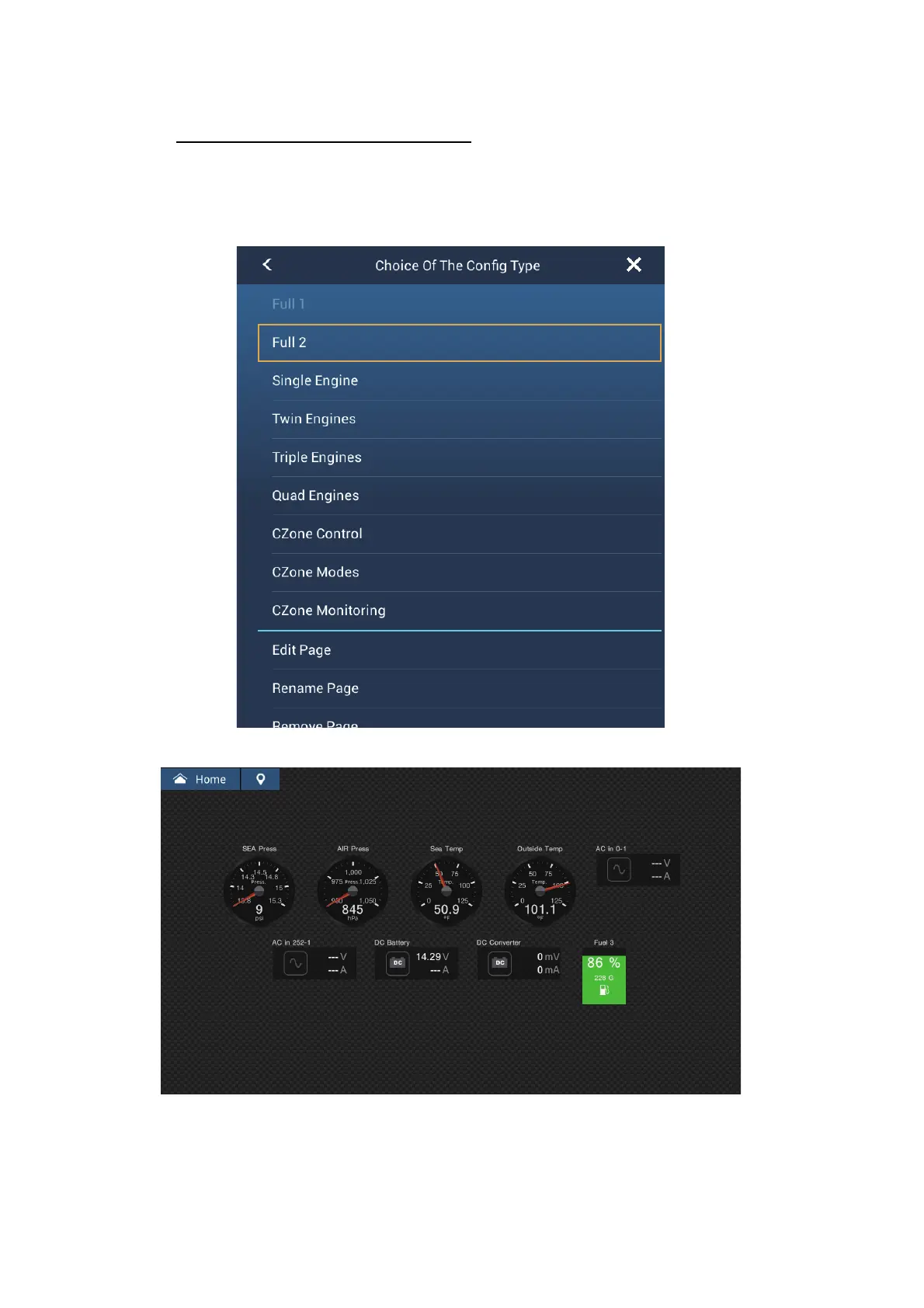 3. Tap [CZone Monitoring] to show the following screen.