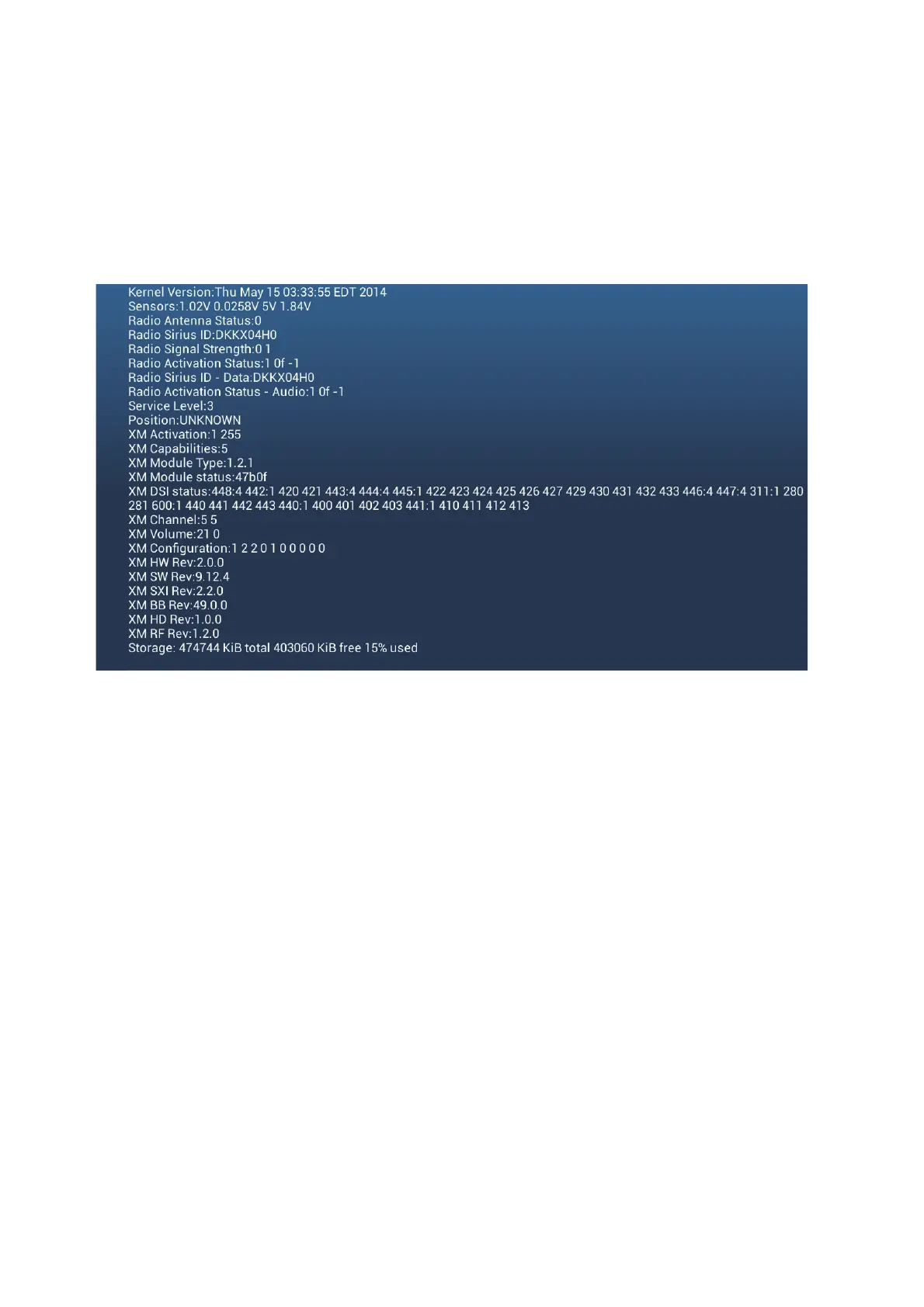 2. Scroll down to the [SIRIUS DIAGNOSTIC] window, then tap [Sirius Radio Diag-