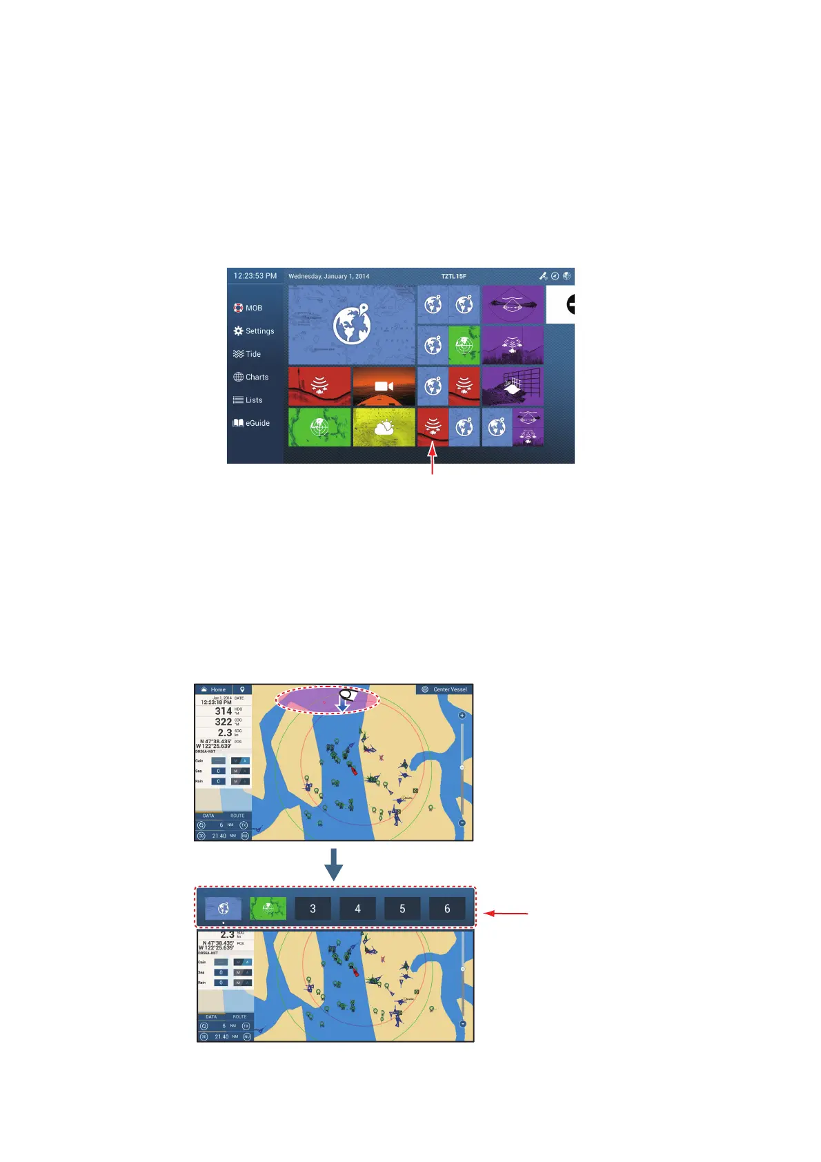 Tap the [Home] icon to show the home screen. Tap the applicable display icon. (It may