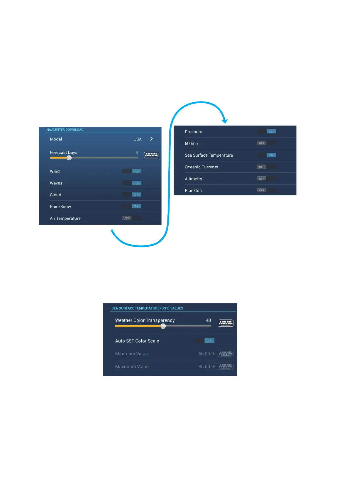[Auto SST Color Scale]: Activate this feature to adjust the SST color scale auto-