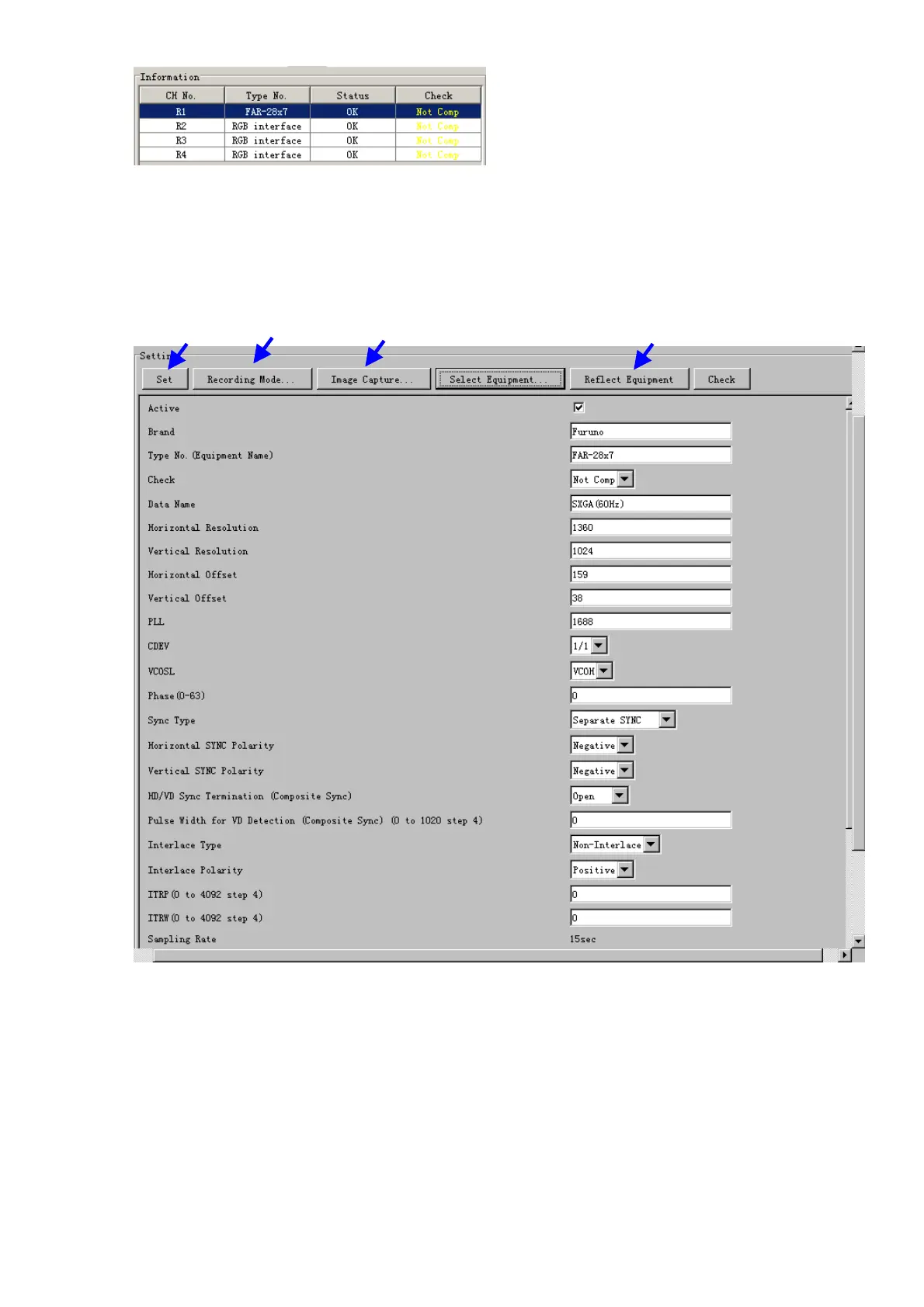 5. Click the Image Capture button in the Setting Area. Confirm the correct video signal.