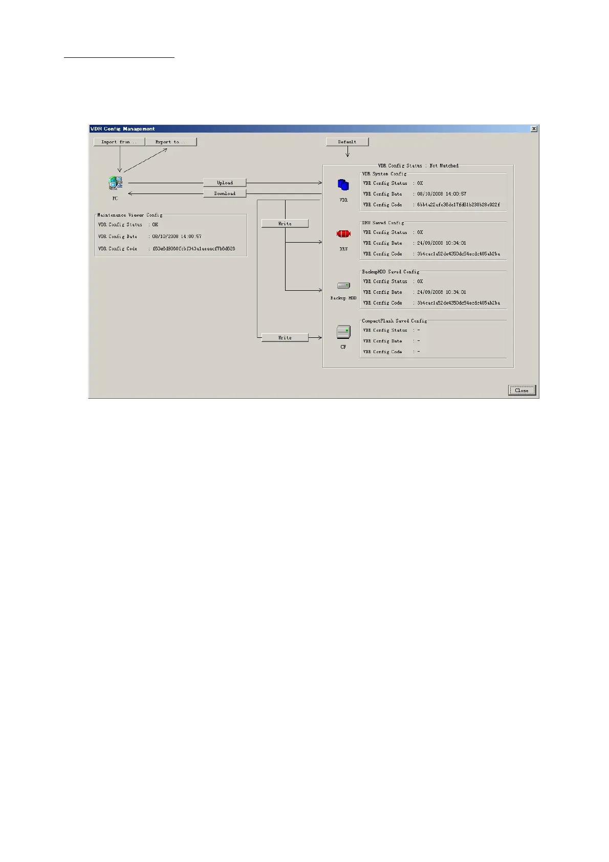 4. Click the Close button to close the VDR Config Management Dialogue Box.