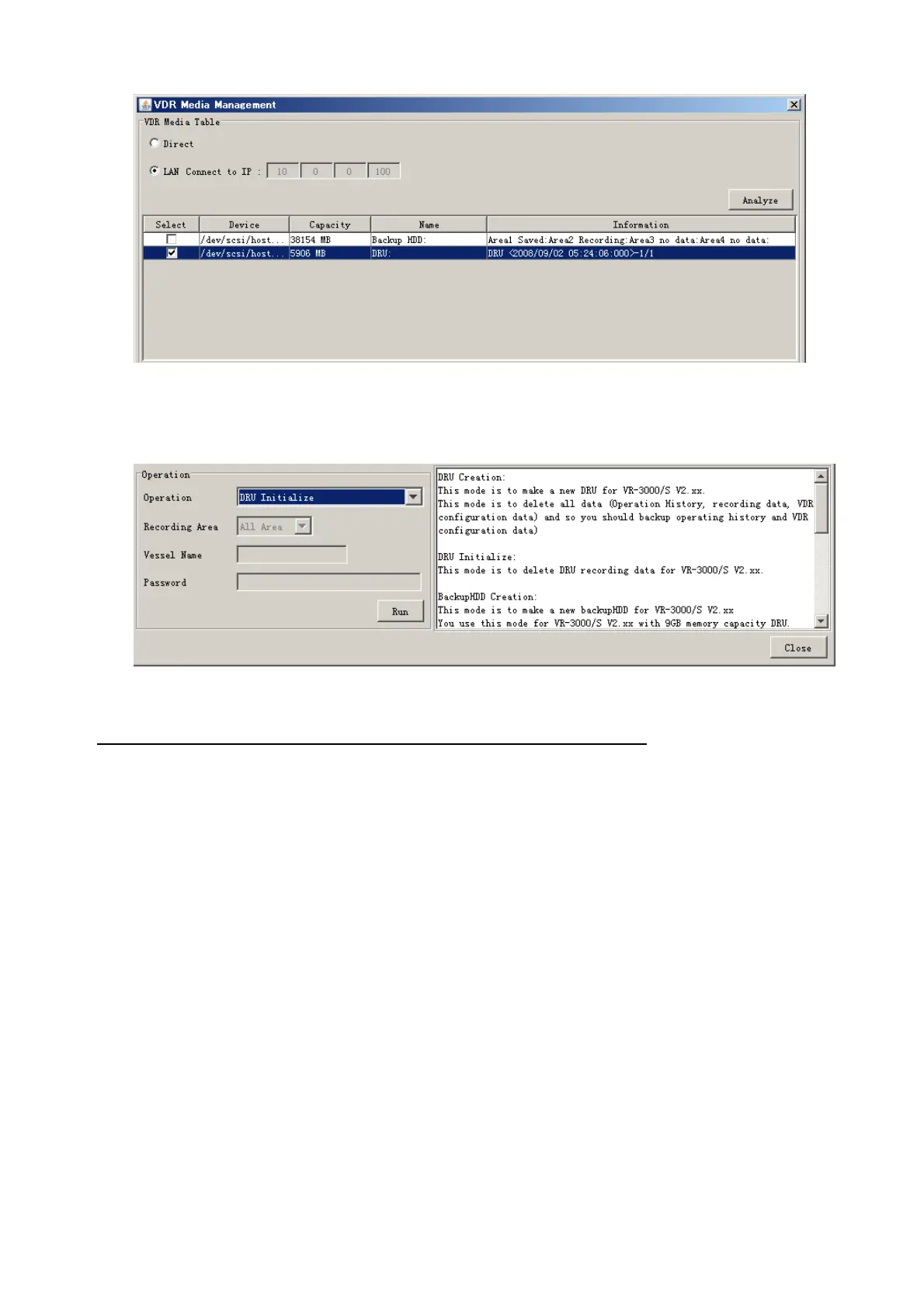 10. Click the Analyze button. A list of recording media connected to the VDR appears.