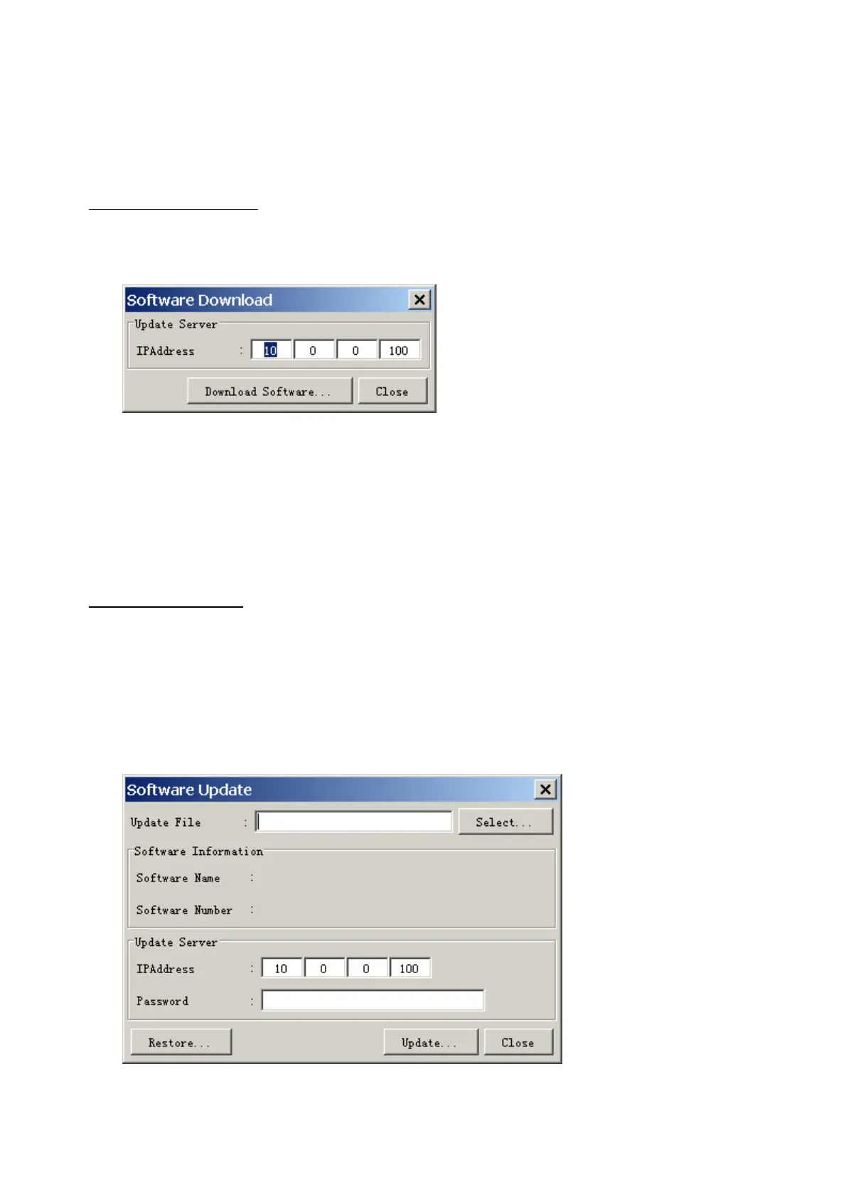 3. Enter the IP address 10.0.0.100 in the IP address box in the Update Server area.