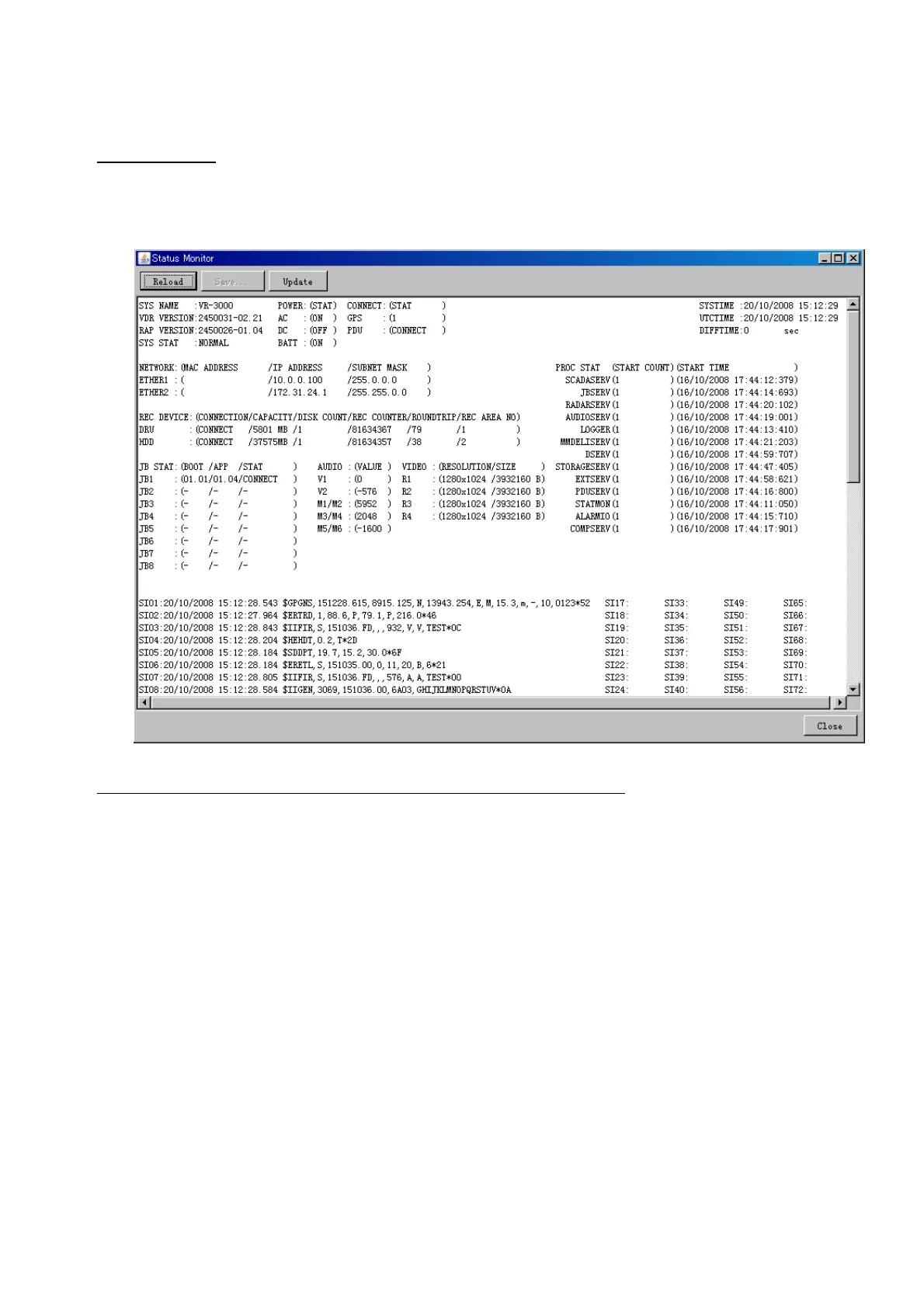 Save: Available when Reload ON is selected. The contents of the Status Monitor can be