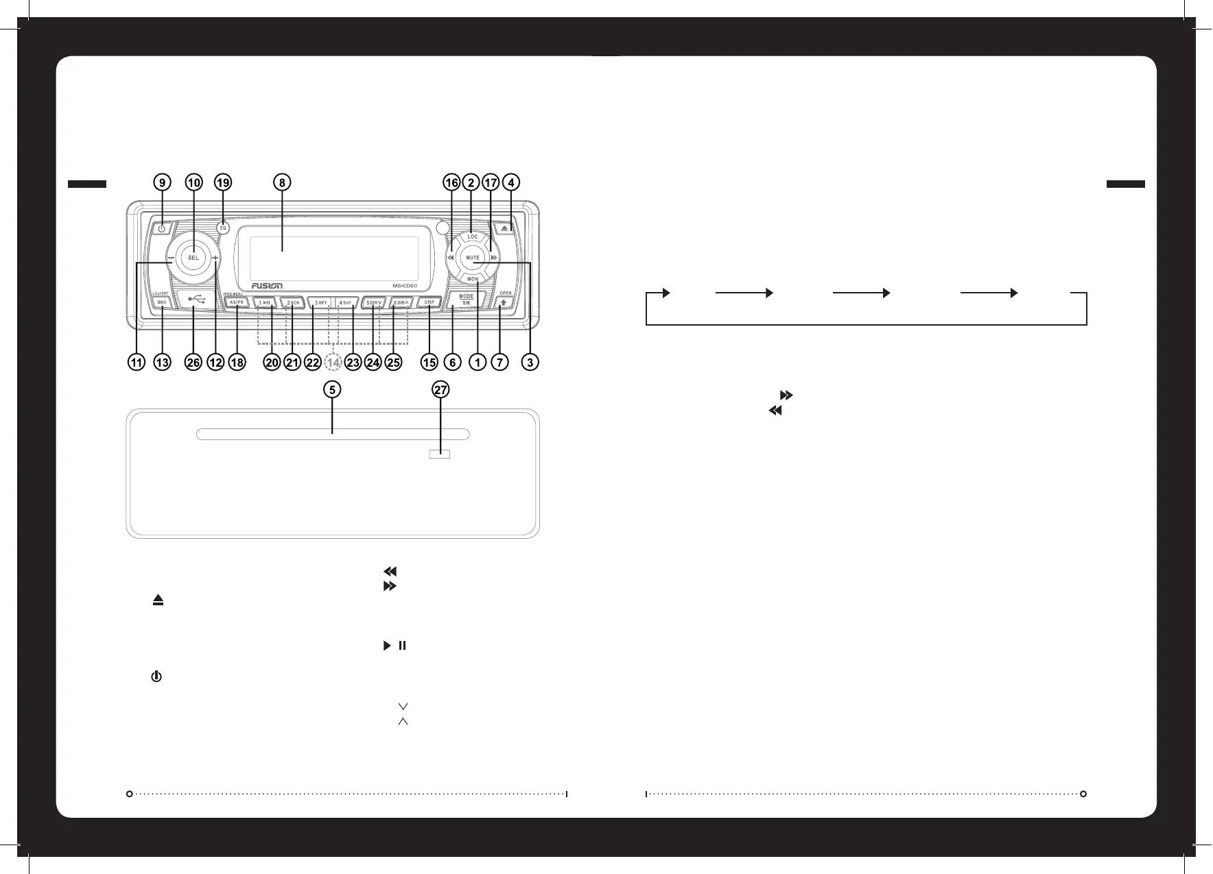 Press the SEL/MENU button (10) repeatedly to cycle the audio mode through bass, treble, balance and fader modes.