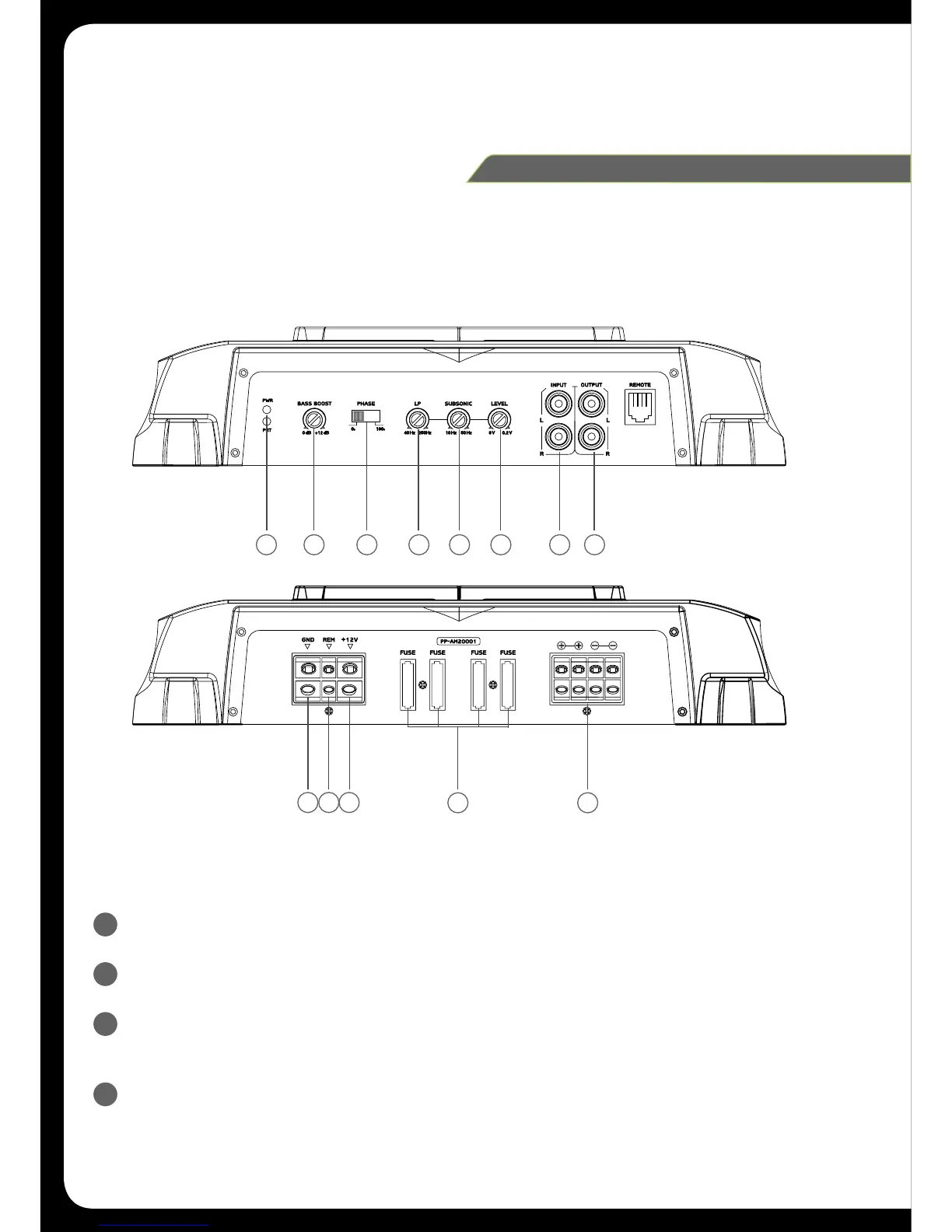 This displays ‘Green’ if the amplifier has been correctly powered up and ‘Red’ if any faults are present.