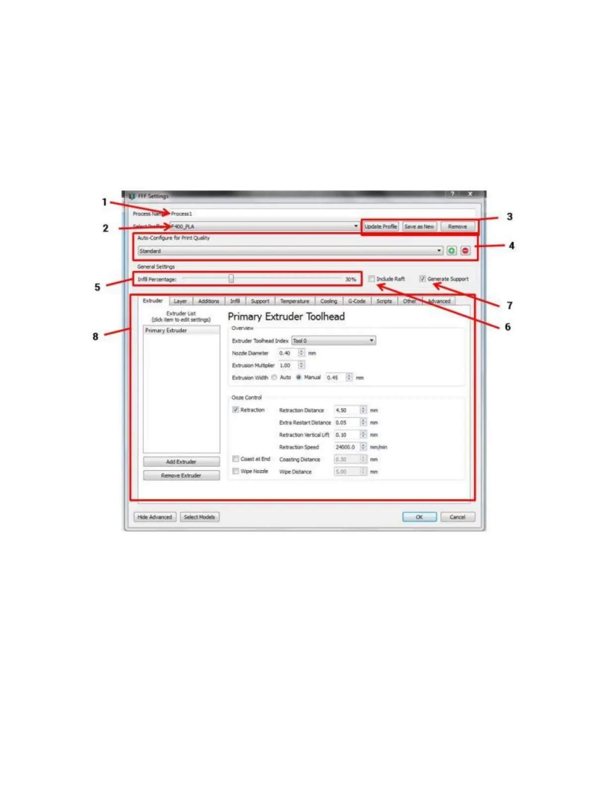 For your F400, we’ve built a separate process for each material. The base settings in each process are set up to