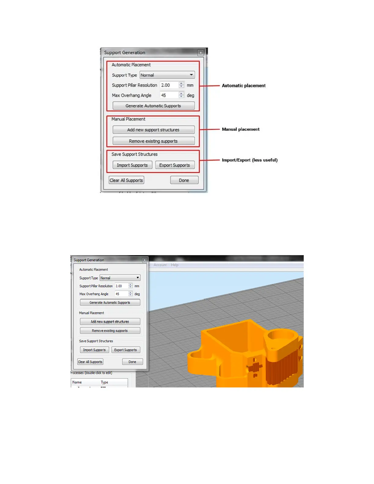 Manual placement; Allows you to manually add or remove support by using your mouse.