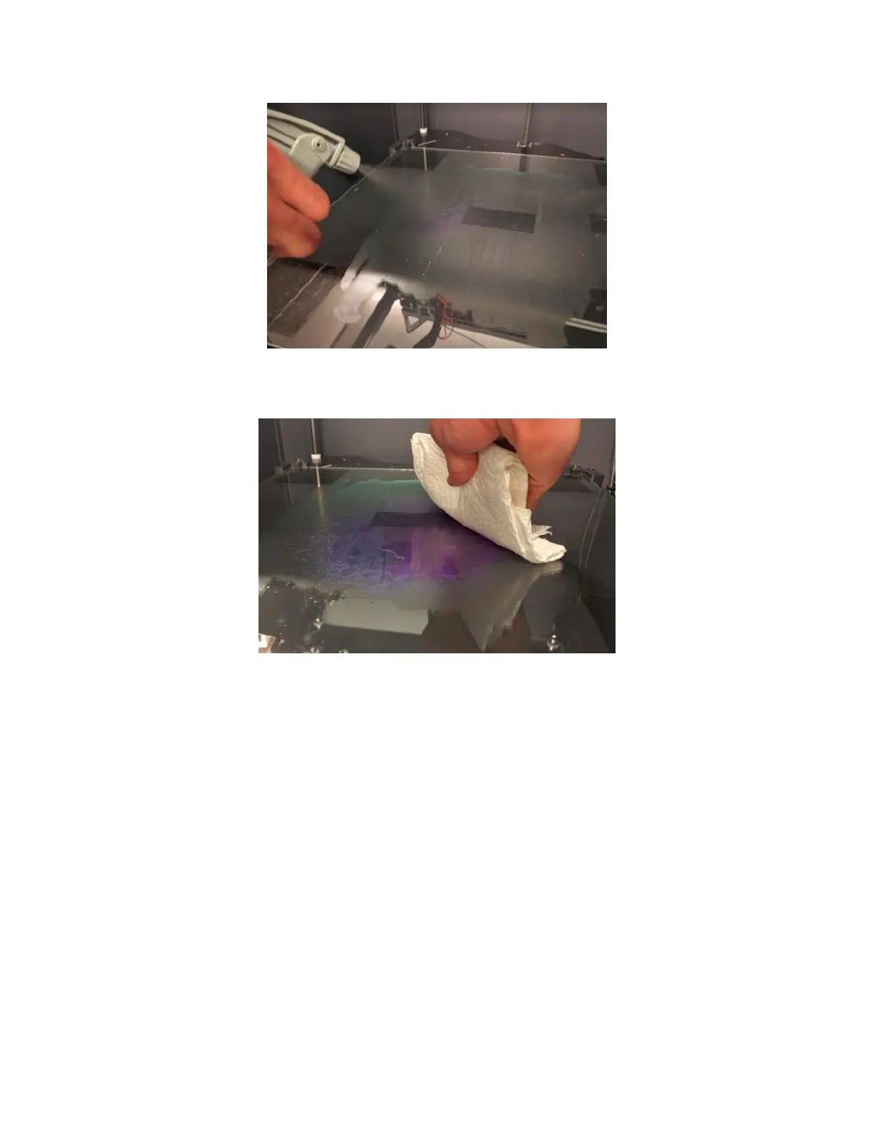 If you’re immediately starting another print, make sure the bed is dry before applying fresh gluestick.