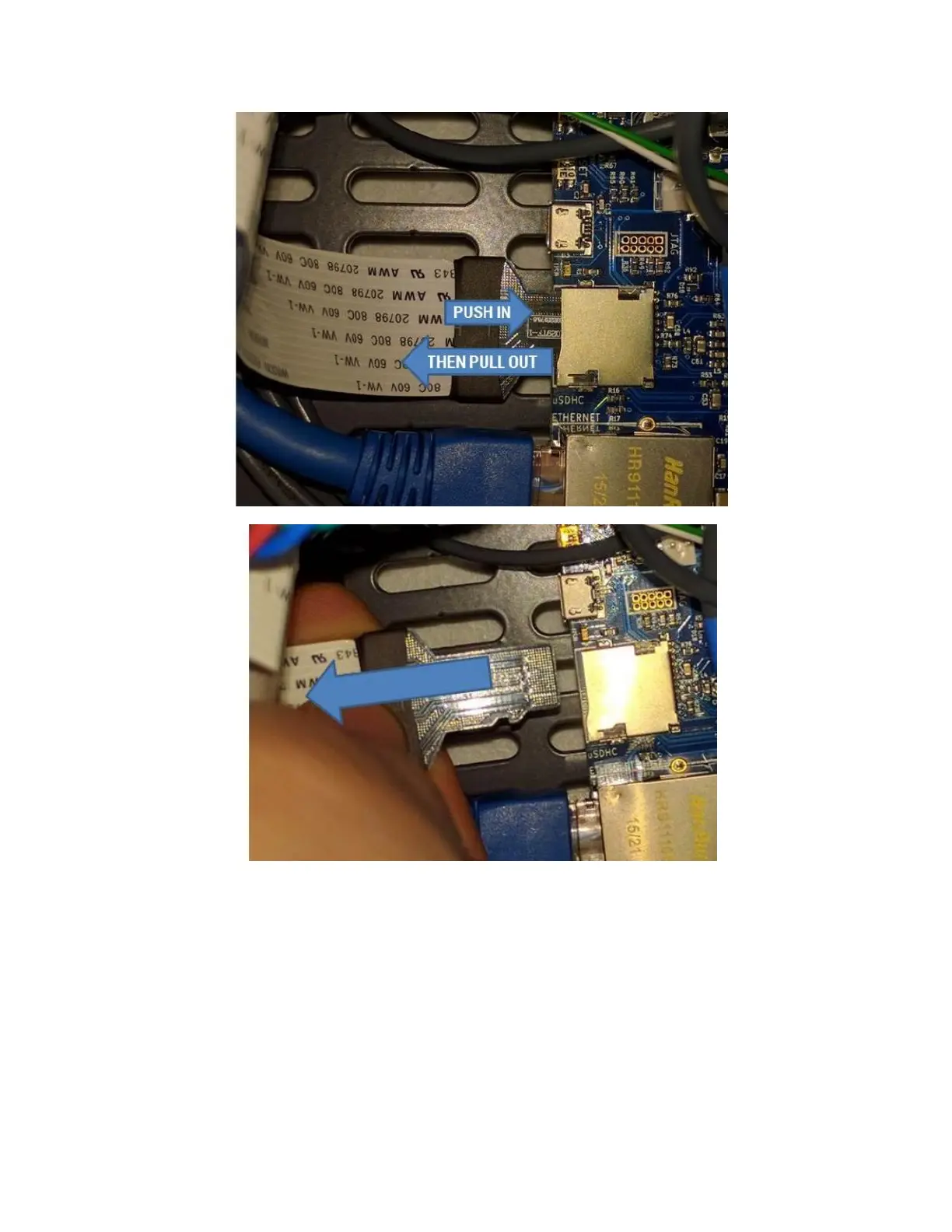 Now you can insert the USB cable. The wide side of the connector faces up.