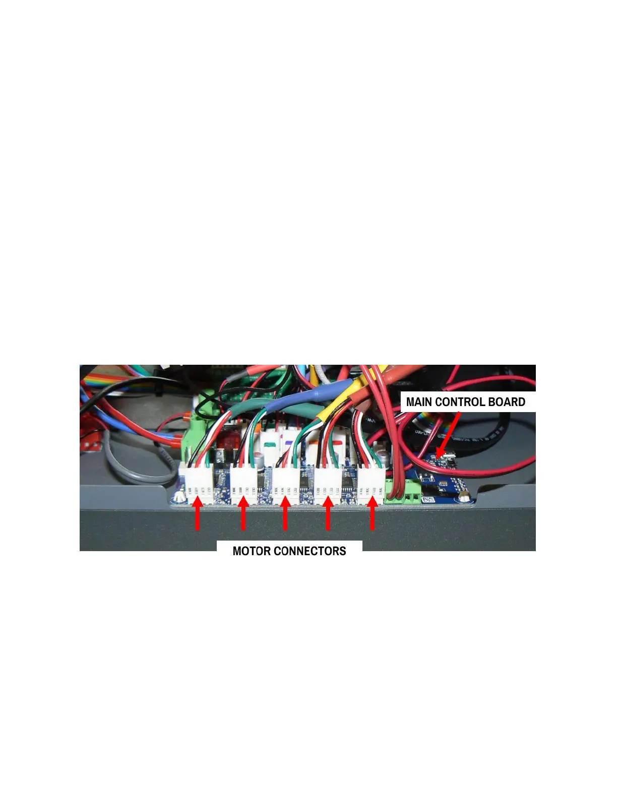 4. Locate the (5) motor connectors on the edge of the board closest to you. These have 4 wires each.