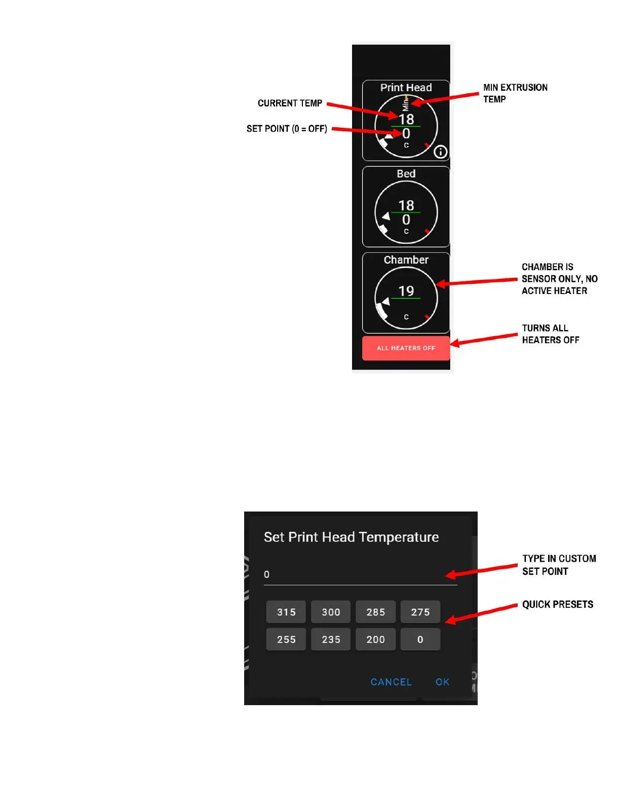the minimum print head temperature