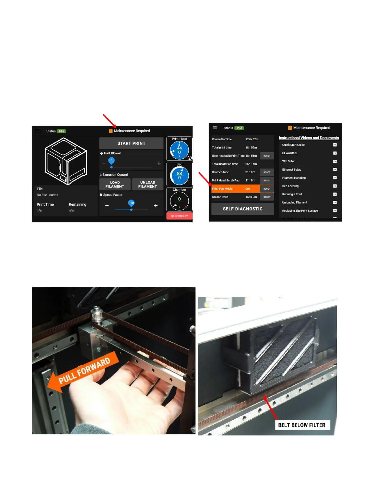 2. Manually move the X axis rail to the front of its travel.