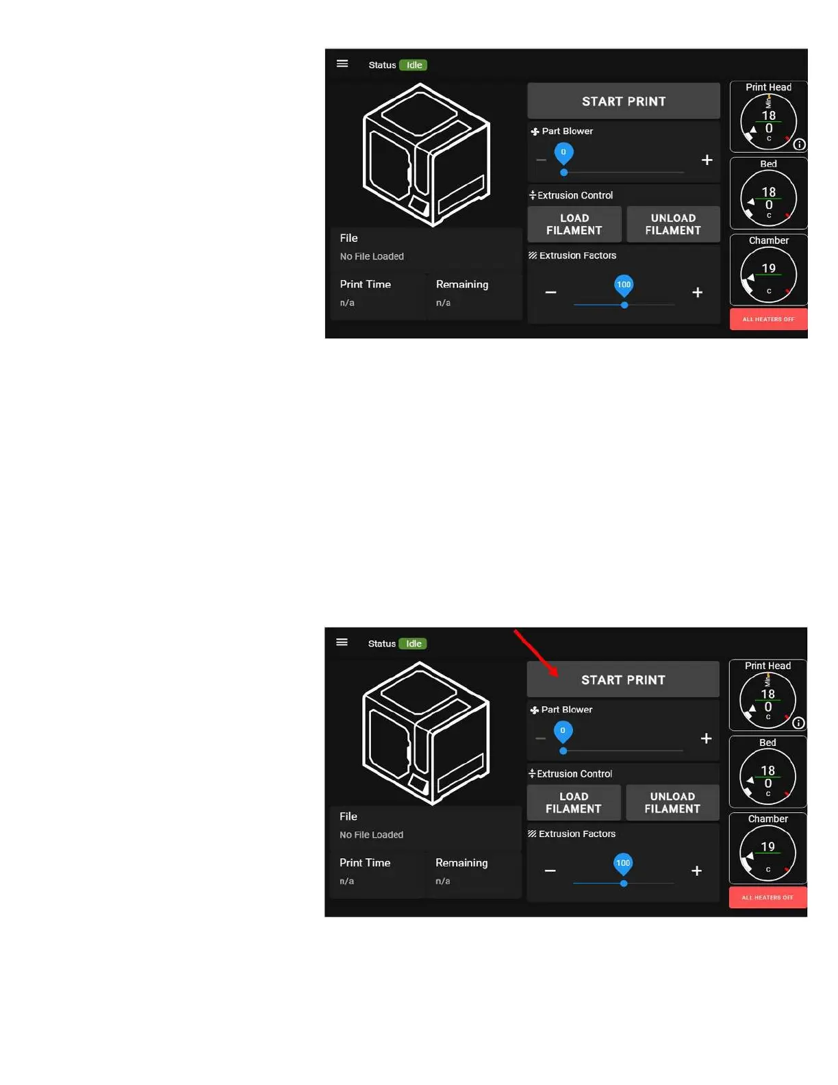 Please refer to the Cleaning & Preparing the Bed section for instructions on preparing the bed for printing.