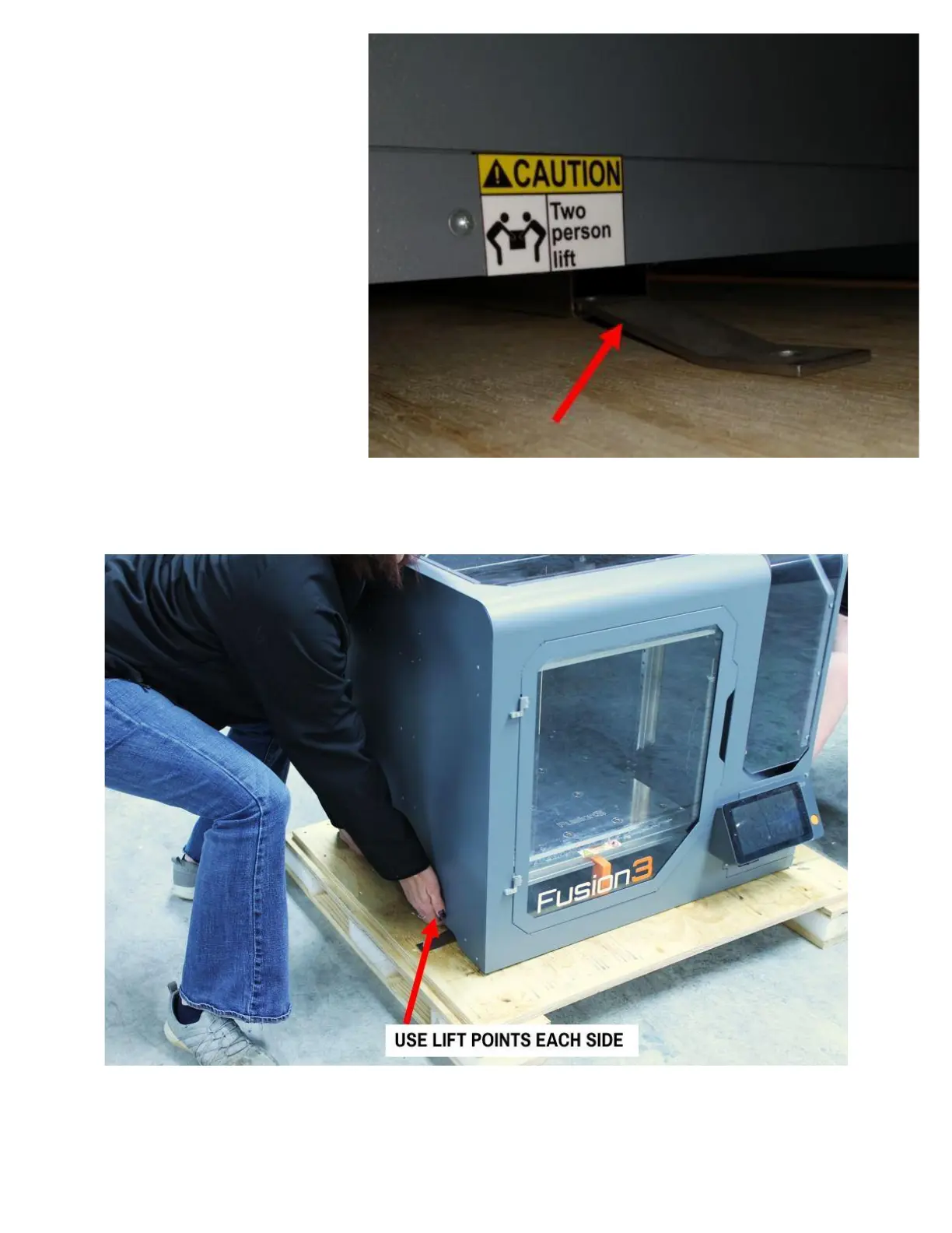 9. Use 2 people to carefully pick the printer up off its pallet and move it to a suitable location.