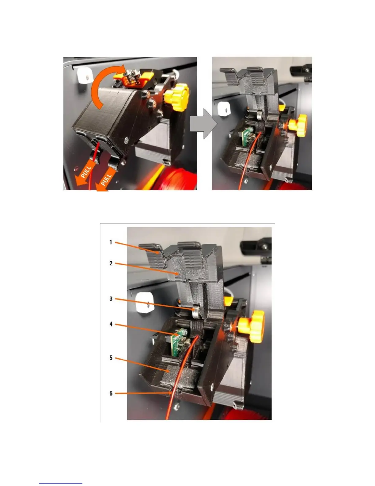 Use your finger to pull the 2 latch tabs on the door towards you to release them. The door will then pivot