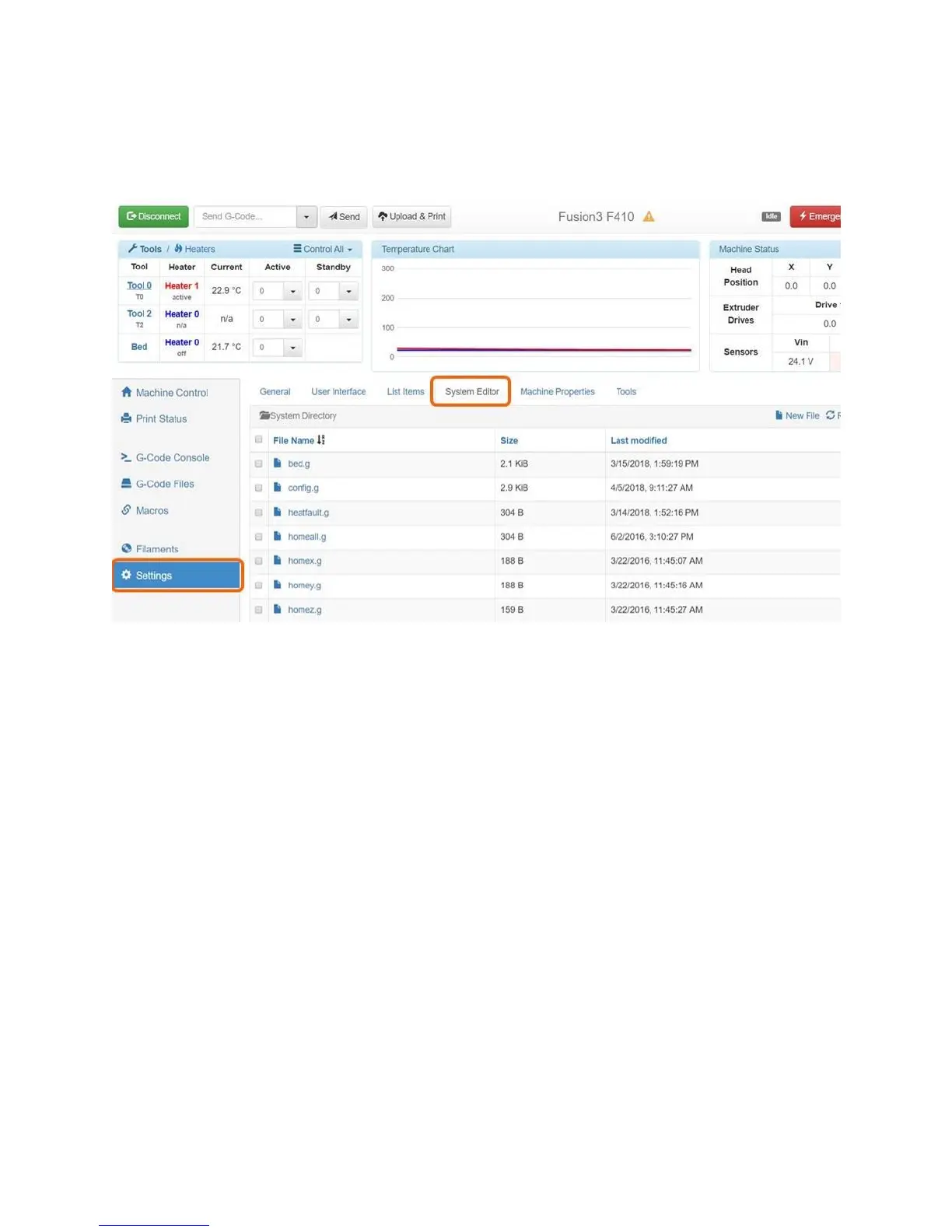 The System Editor tab is very useful for making changes to your printer’s settings without requiring you