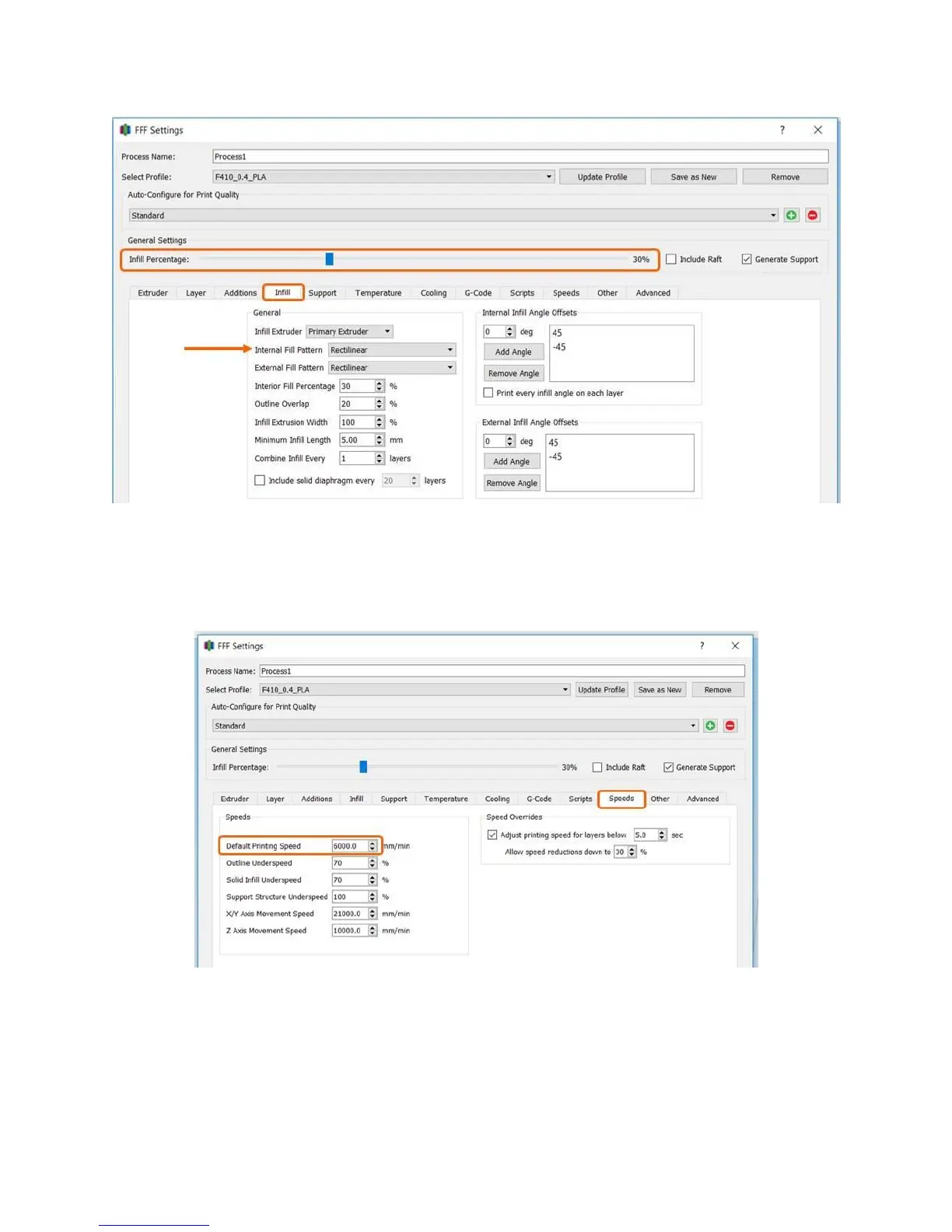 leave other values as-is. Remember that printing faster will result in somewhat lower output quality, and