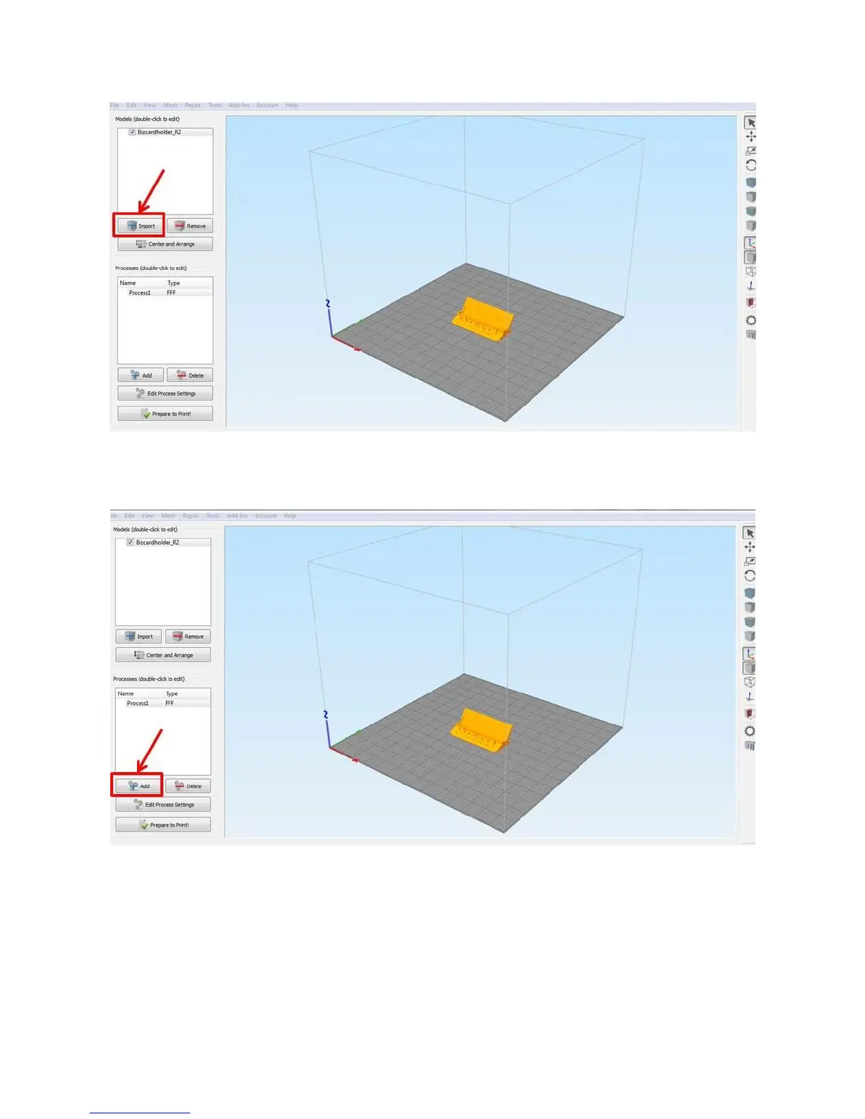Next, add a Process and make sure the profile you’ve selected matches the material you have loaded, or