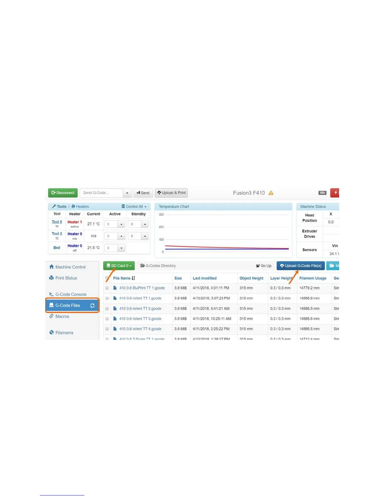 Log into the web interface and go to the “G-Code Files” tab. Click the “Upload G-Code Files” button.