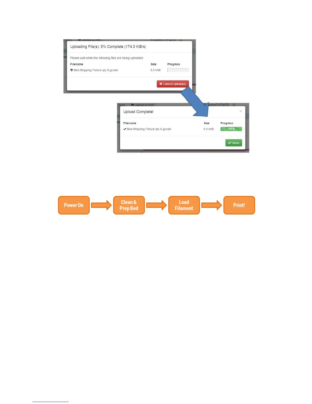 Log onto the web interface and navigate to the “Gcode files” tab. Locate the file you wish to print and