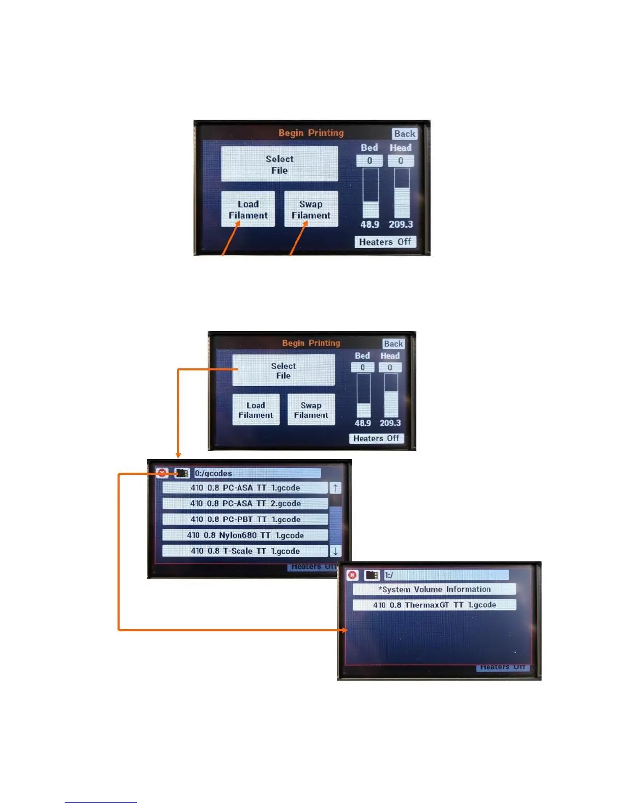 When you’re ready to print, (filament loaded, bed prepped), press “select file”. Navigate to where you