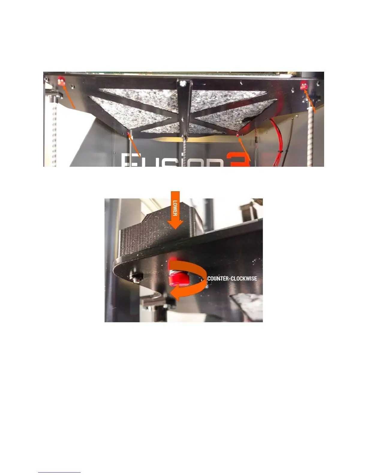 On the bottom of the bed plate you will see a small red thumbscrew at each corner of the bed. This is