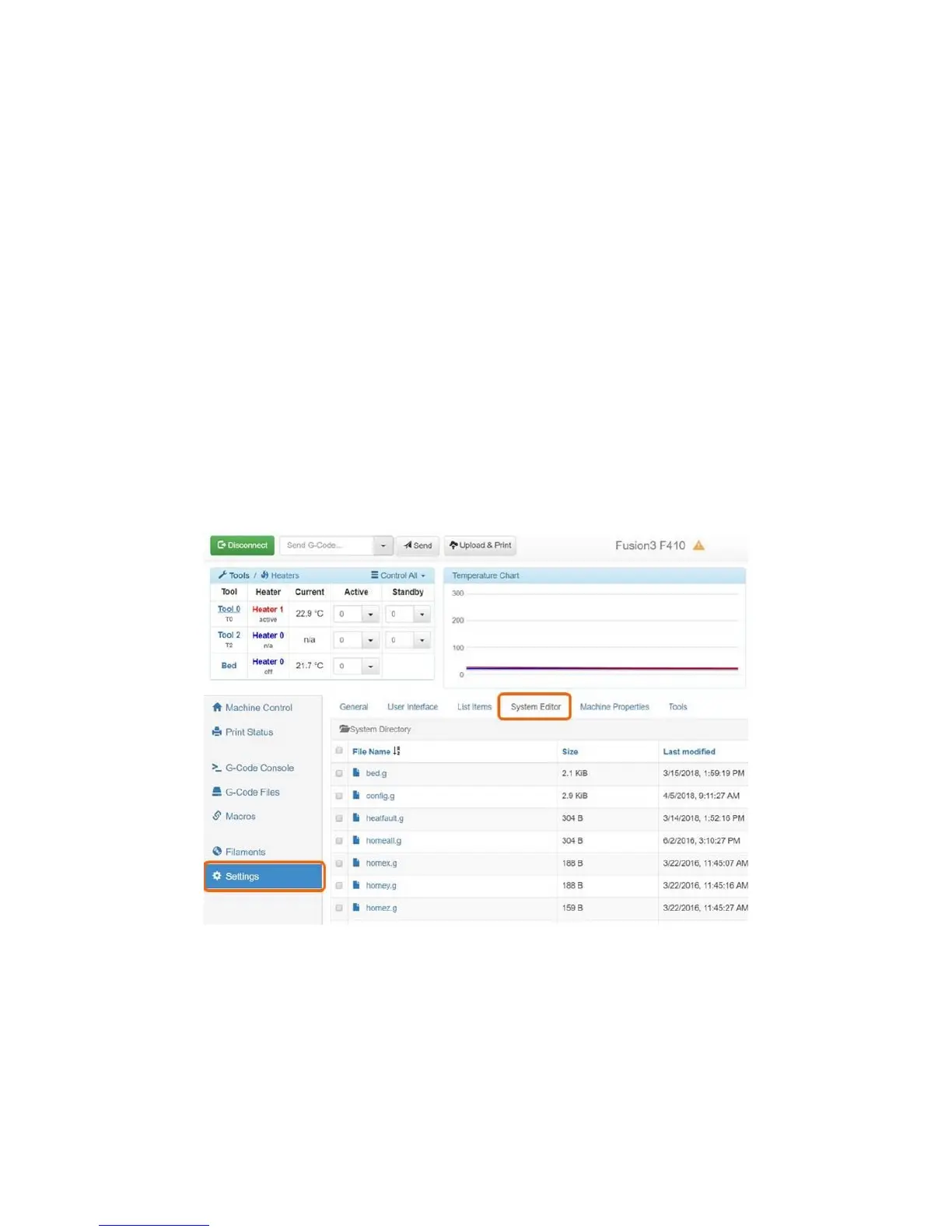 4. Click on config.g. An edit box will open. You can directly edit your config.g file from here.