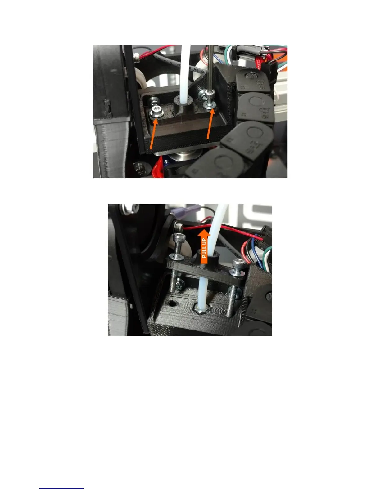 Tug the tube retention plate straight up until the M3 screws are clear of the print head body.