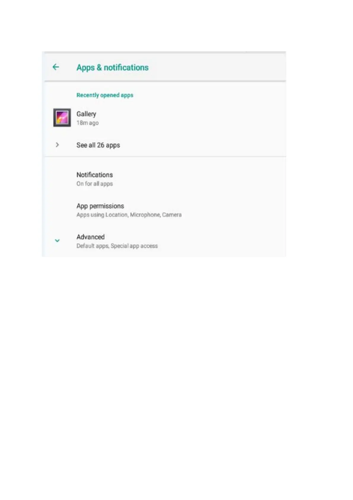 permissions and Advanced for Default and some special app access.