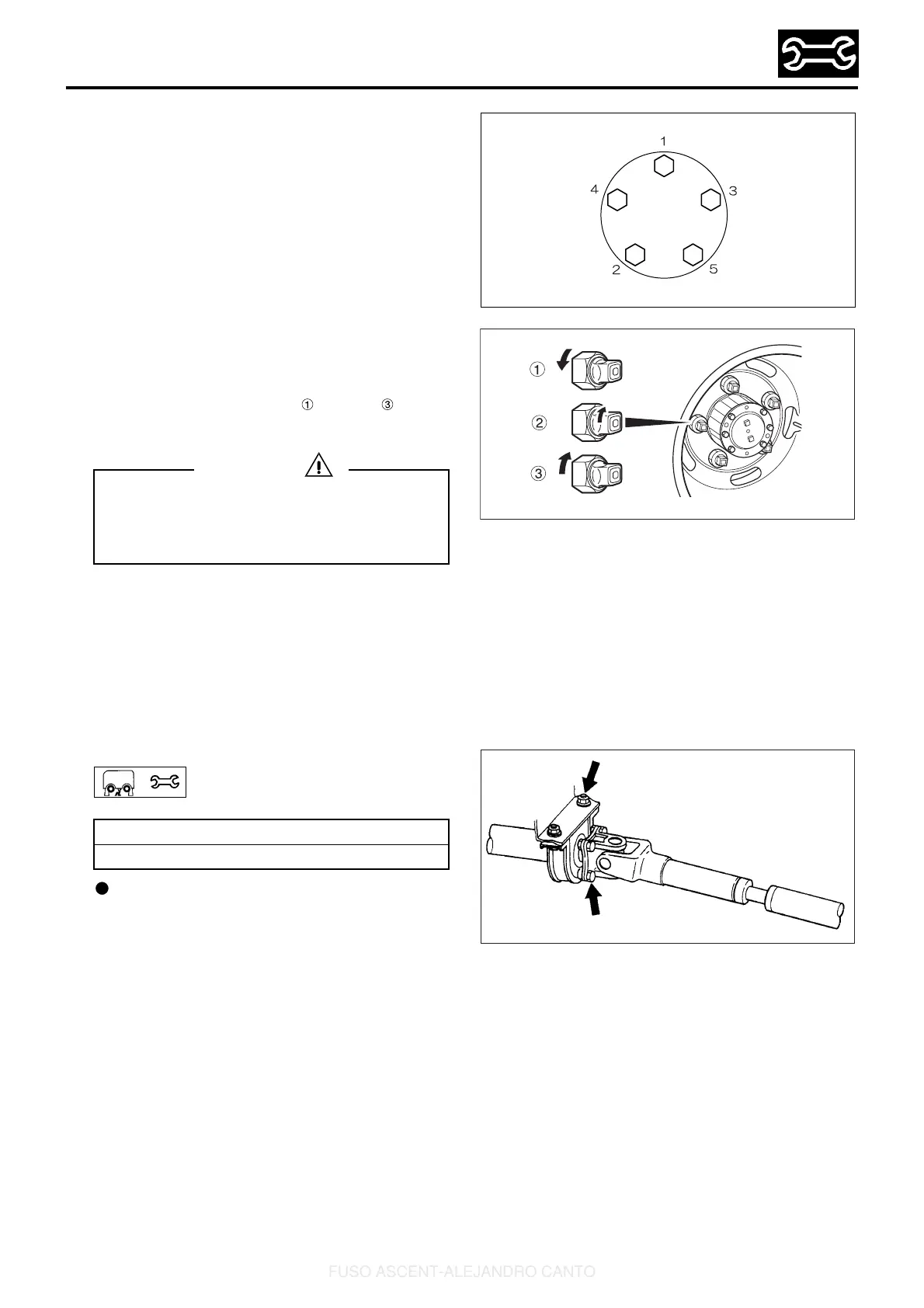 Loosen the nuts numbered 1 – 2 – 3 or 4 – 5 in