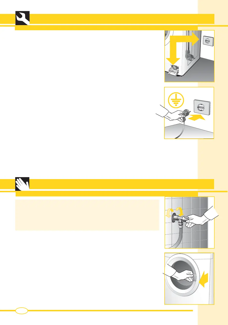 ▼ The washing machine must not be connected to the electricity supply using